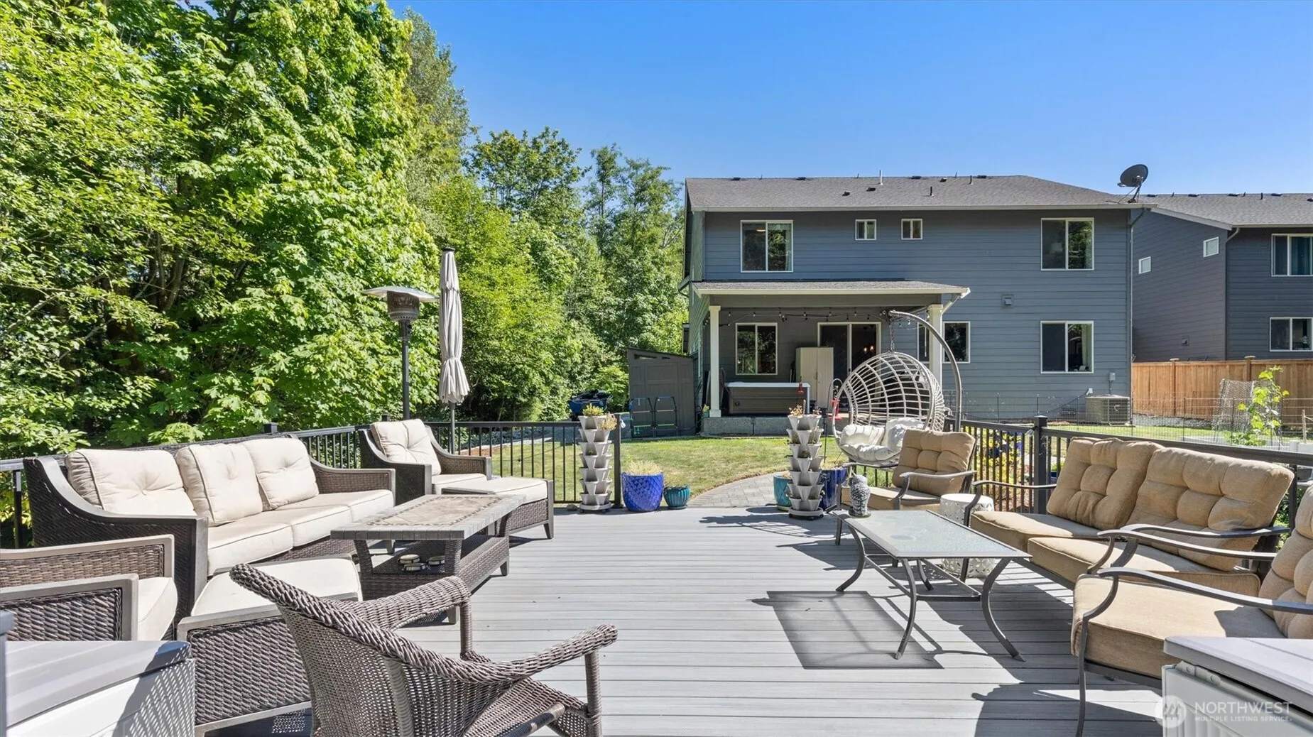 Generational living, entertaining, or office space? Craving parks, trails & greenbelt privacy w/ no neighbors on 2 sides? This pristine 5-bed, 3-full-bath home offers inviting covered front, back porches & a dreamy $90K backyard w/ a huge deck, lower patio, firepit, & low-maintenance yard. The chef’s kitchen has granite counters, wall oven, gas cooktop & storage galore. You’ll find walk-in closets in the bedrooms, stone counters & tiled floors in the baths & newer plush carpet throughout. Upstairs a spacious loft, a primary suite w/ 5-piece bath & an oversized laundry w/ space for crafts. A cozy fireplace warms in winter & heat pump keeps things cool in summer. The long driveway & gravel side yard provide ample parking for guests & toys!