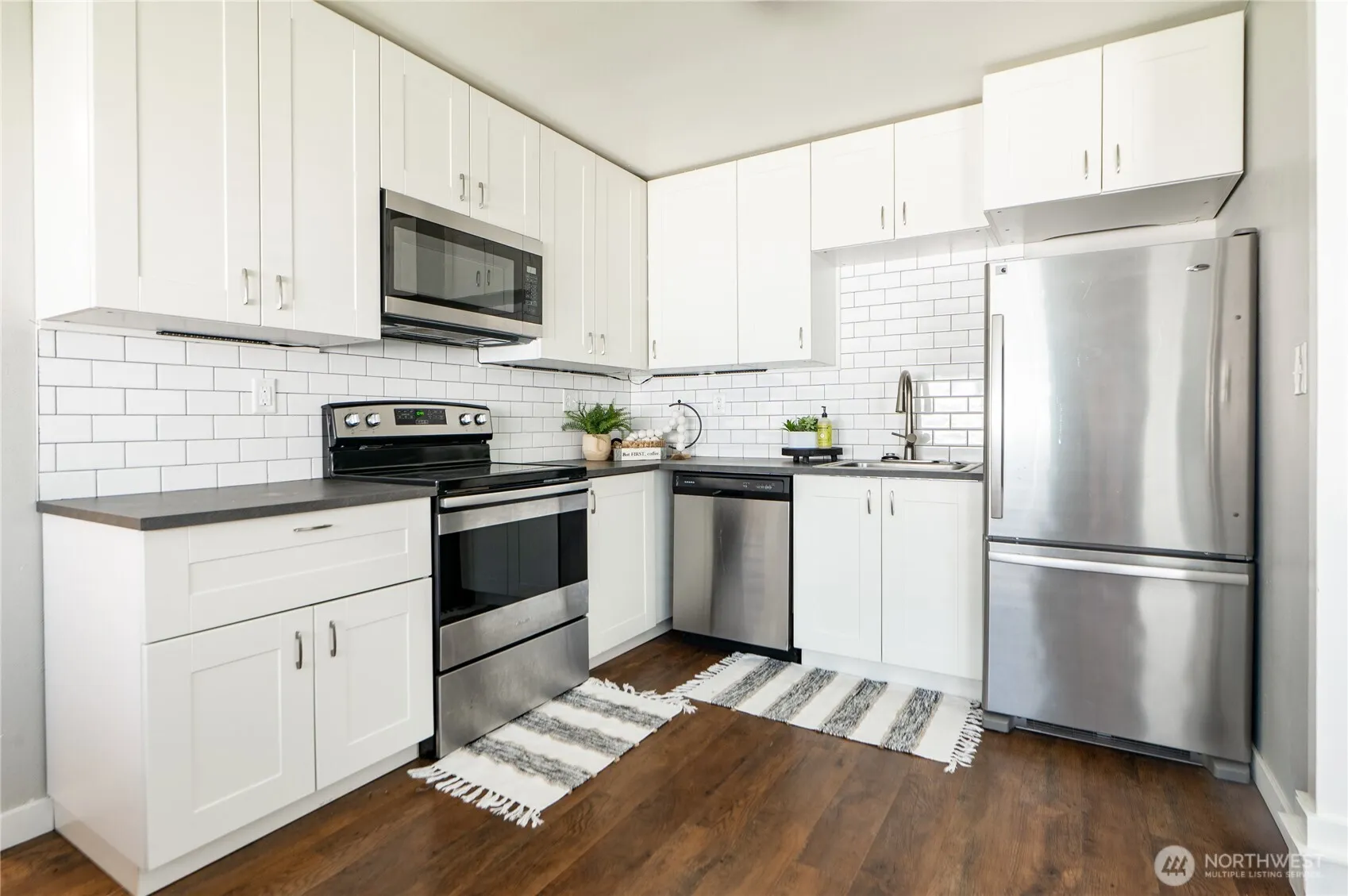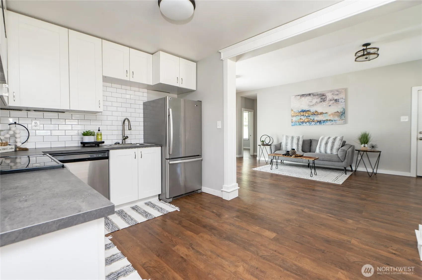 BUYER FINANCING FAILED – BACK ON MARKET DUE TO NO FAULT OF THE HOUSE. Why pay rent when you can OWN this charming home for less than the going rental rates? 2 bedroom/1.5 bath Craftsman rambler updated in 2018/2019: dreamy new kitchen with fresh & modern white cabinets, stainless steel appliances + new windows/doors/trim, roof, interior/exterior paint, laminate flooring, efficient mini split for heating & cooling, H20 tank + 9′ ceilings throughout. Room to build a garage + zoning allows for a ADU in that new garage…buyer to verify all details with the City of Blaine to their satisfaction. Don’t miss the potential in the attic for storage or…you decide! Fantastic walkable location to the waterfront, schools & bustling downtown Blaine!