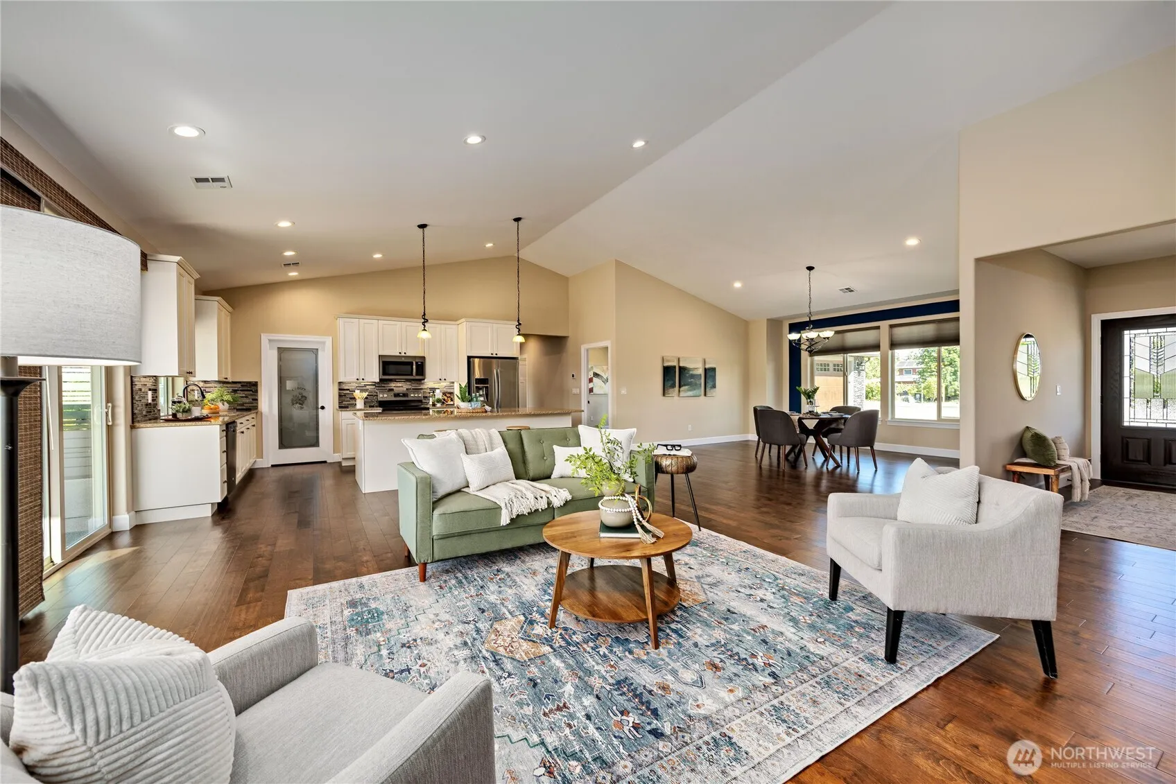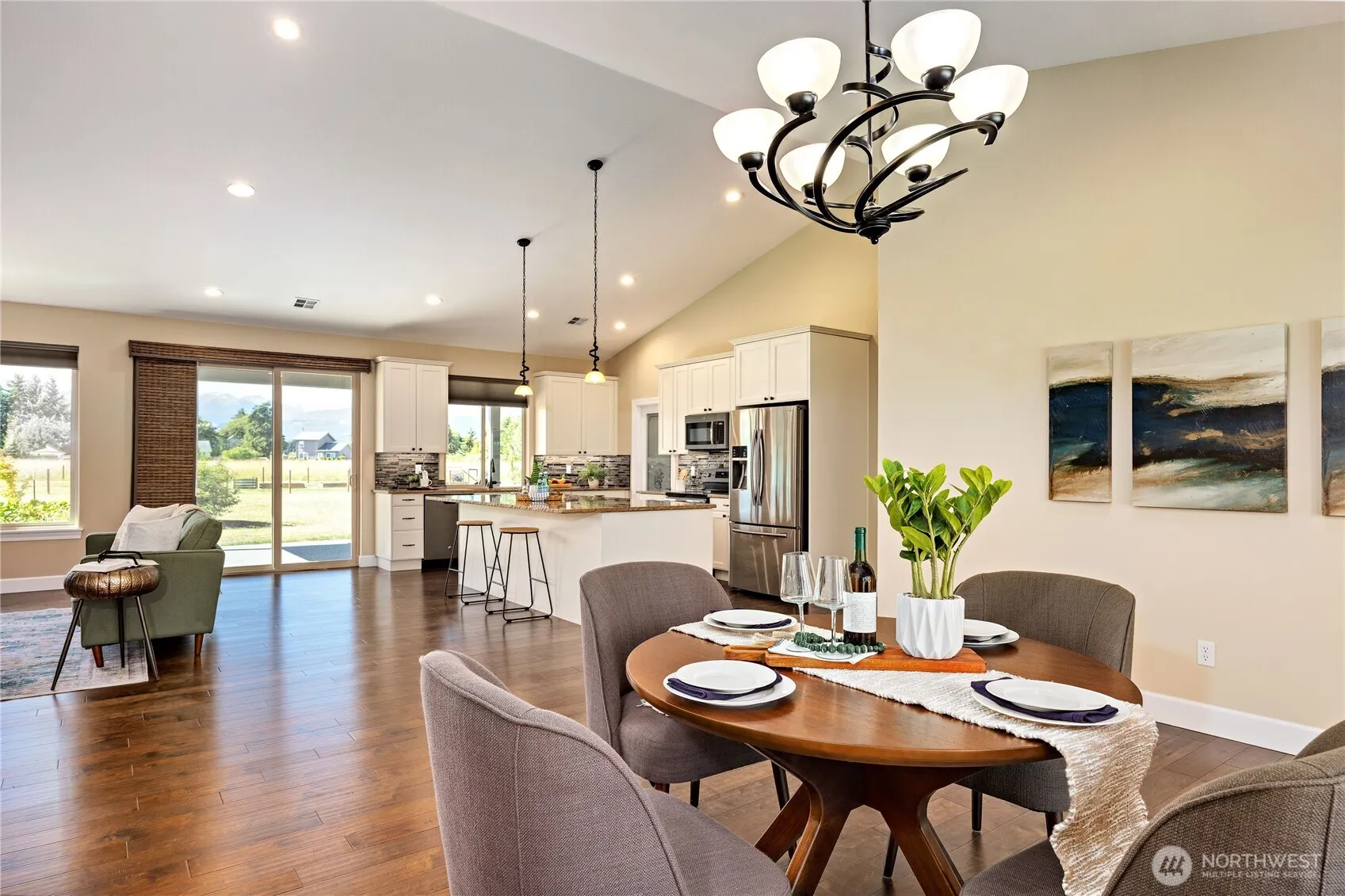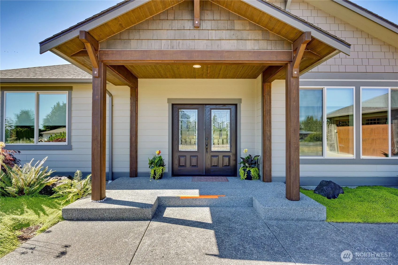 Presenting a gracious, immaculate one-level home with stunning Olympic Mountain views. This beautifully crafted residence features an open floor plan w/ vaulted ceiling, quartz counters, SS appliances, soft-close cabinetry, propane fireplace & heat pump for heating & cooling. South-facing triple-pane windows fill the space with natural light. Sliding doors open to the covered patios to enjoy the outdoors. Set on over one level acre of land with raised garden beds, fruit trees, RV hookup with dump station, powered outbuilding, wired for hot tub, & plumbed for BBQ, get ready for a great summer. The circular driveway & 3-car garage complete this exceptional property. Lovingly cared for the details throughout add refined elegance. A true gem.