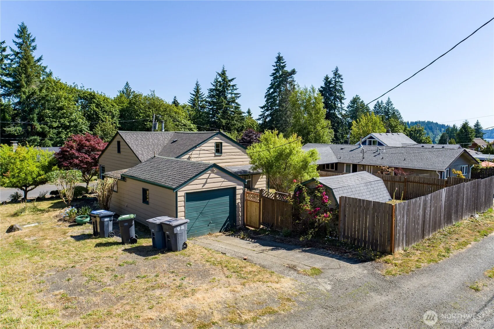 Charming 2-bedroom, 1-bath home on a spacious corner lot in Shelton! Recent updates include a new bathroom floor and upgraded plumbing. The primary bedroom features a built-in closet with plenty of drawers and shelves, plus two hallway closets for extra storage. The dining area offers built-in cabinets, and the bathroom includes a large built-in cabinet for added convenience. Enjoy the outdoors in your fully fenced backyard with mature landscaping, native plants, and a covered porch—perfect for relaxing or entertaining. Detached garage adds great workspace or storage. A solid home with character and value—come see it for yourself!
