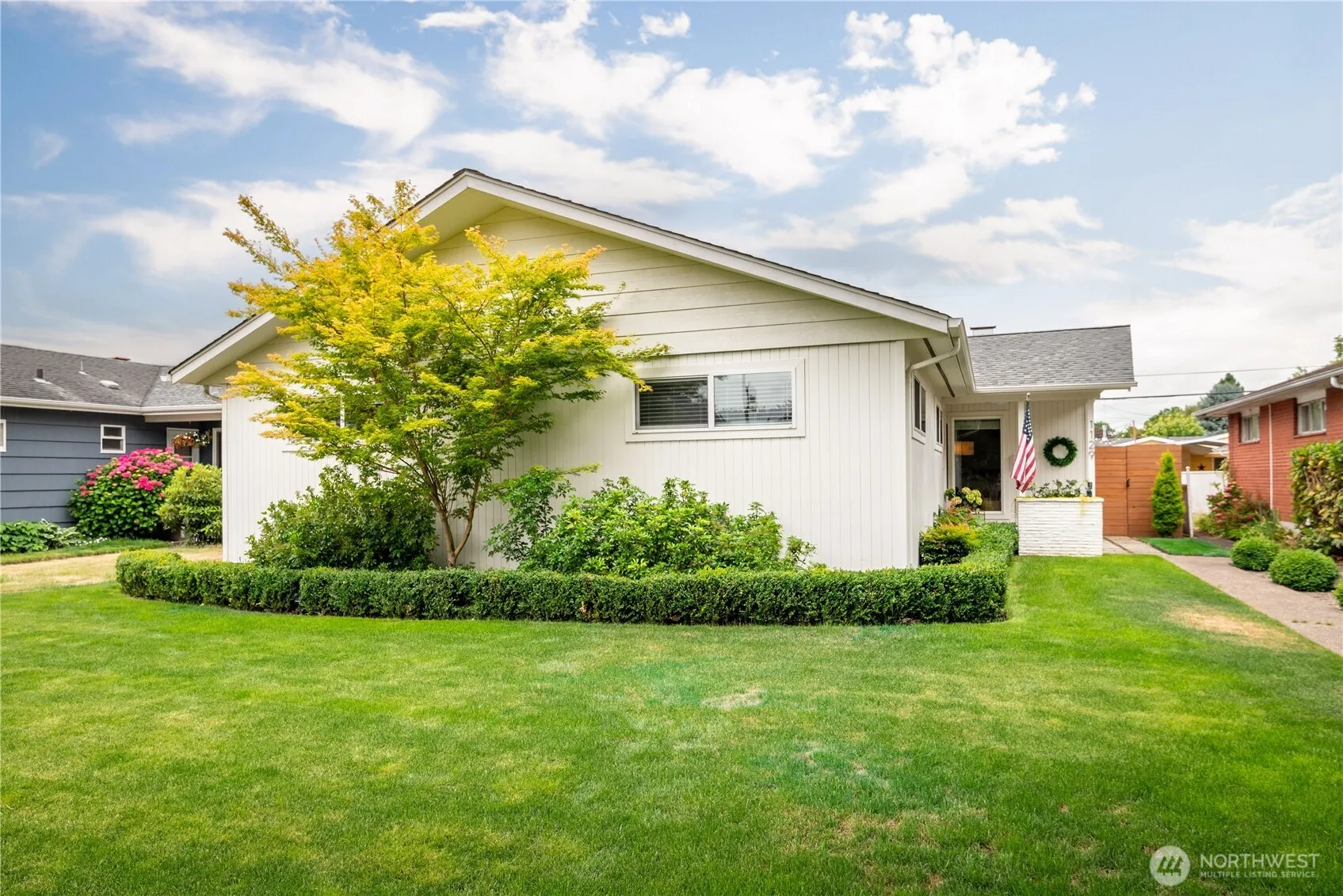 Step into a timeless piece of architecture with this Mid Century home. Situated in a cozy neighborhood, close to shopping, schools and just a short distance to the Lake. This home features beautiful harwood floors throughout to create that warm feeling. Creative built ins throughout this home. You will love the brick fireplace that is the center piece of the living room. Formal dinging room just off the new kitchen with new cabinets and vintage range. Down the hall you have 3 bedrooms and a full bath and a half bath for your guests. The back yard is a dream with 7′ fencing for your privacy wonderfully landscaped so you can sit on your patio and have your summer meals or if its raining you will enjoy the covered patio. This is one!