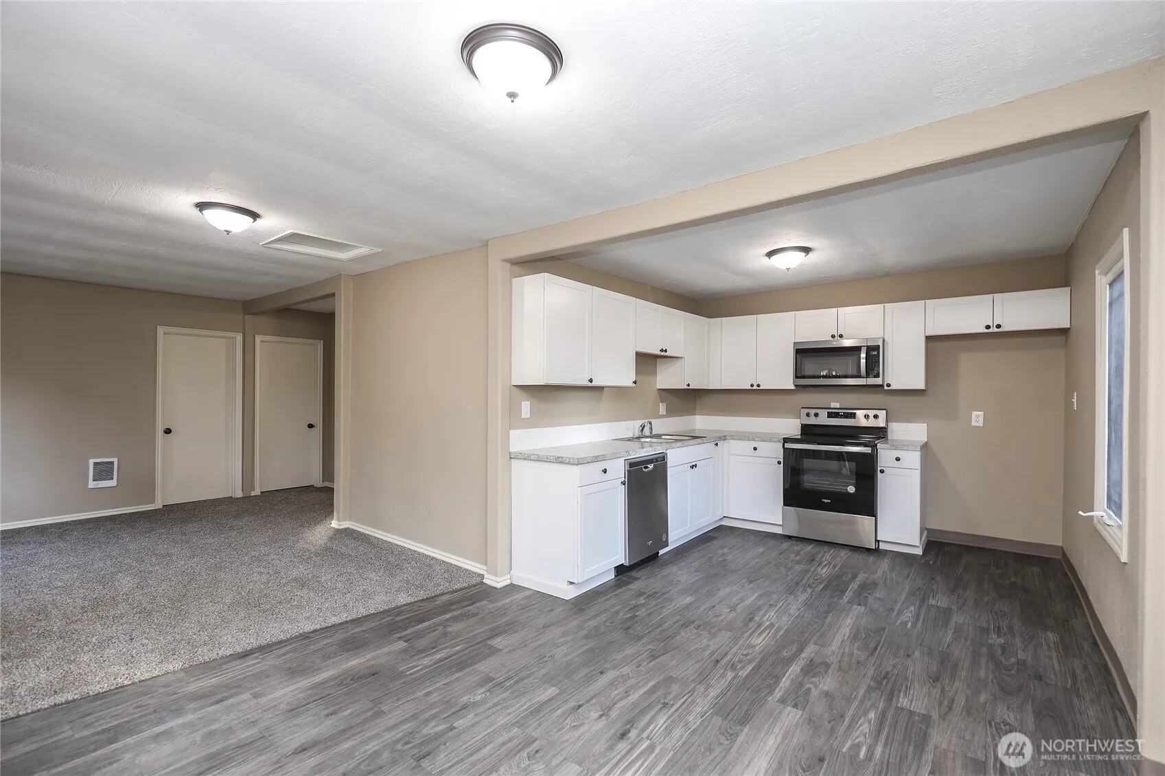 Don’t miss this charming updated home in Kelso! This 3 bed, 2 bath, 1010 sq ft home has an open floor plan w/ living room and kitchen w/ adjacent dining area. Updates include new interior & exterior paint, flooring, cabinets, counters, stainless appliances and more. Also has a covered deck, plenty of room for extra vehicles, and located on an oversized lot. This home is fresh, clean, and ready to move in!