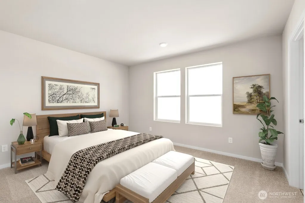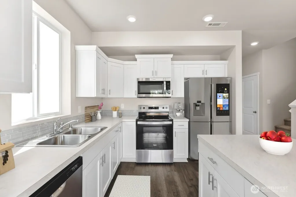 Black Horse community featuring the FOSTER in phase 2 with a refreshing look of white cabinets! The bright kitchen has center island, stainless steel electric appliances and LED lighting with 9-foot ceilings on main floor. This popular floor plan has an open flowing floorplan with lots of light! Level rear yard with partial fence and West facing back yard location! Primary bedroom can accommodate a king bed with nightstands w/walk in bath. Large community park and walking trails throughout. Landscaped front yard. Buyers, please register your Broker on the first visit including open houses. A/C & smart features included. October completion. Special financing available for qualified Buyers. One of the last Foster floorplans.