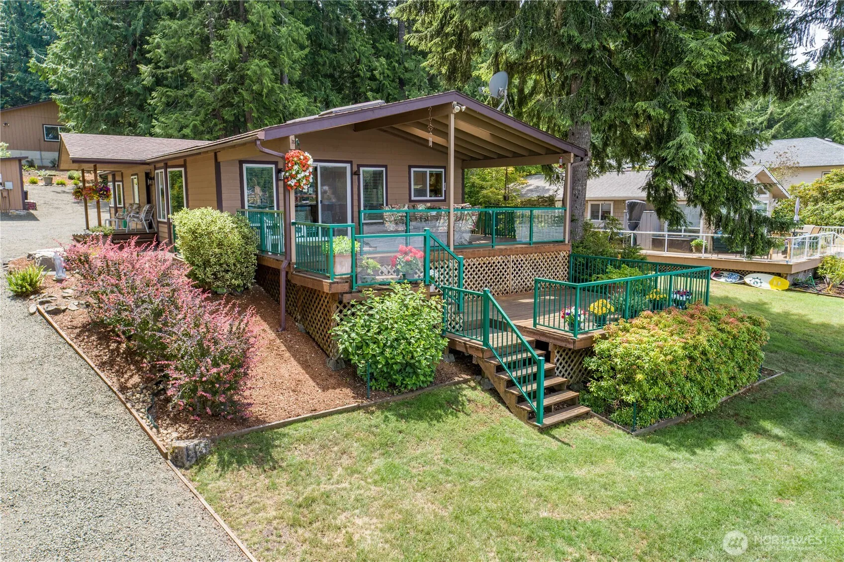 Live the lakefront lifestyle on stunning Mason Lake! This rare no-bank waterfront home boasts 90 ft of shoreline, a private boat launch, and a quality dock—ready for endless summer fun. With 3 bedrooms, 2 baths, and 1,350 sq ft of comfortable living, it also features an amazing covered porch overlooking the water. Set on a beautifully landscaped 0.66-acre lot with a private well, and septic this property offers a large 2-bay garage with shop/storage, a carport, tons of parking, and RV space. No HOA—just freedom, privacy, and your own lakefront escape!