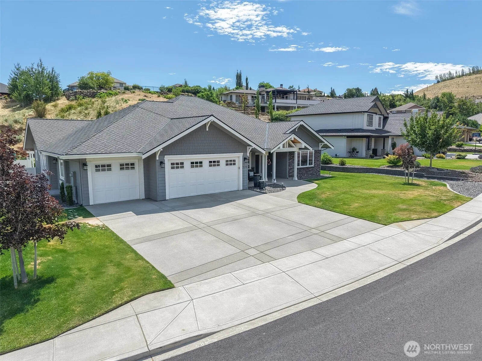 Stunning single-level 4BD+Office/3BA home in Wenatchee’s desirable Broadview neighborhood! Thoughtfully designed with a spacious and private primary suite featuring a spa-like ensuite bath, walk-in closet, and patio access. Custom cabinetry, quartz counters, and engineered hardwood throughout. Gourmet kitchen at the heart of the home with XL island, slate GE Profile appliances, and walk-in pantry. Seamless flow into living/dining with gas fireplace and beverage bar. Three additional bedrooms plus office. Private, fully fenced backyard with covered patio, garden beds, and mature landscaping. Three-car garage. Community pool, clubhouse, and trails nearby!