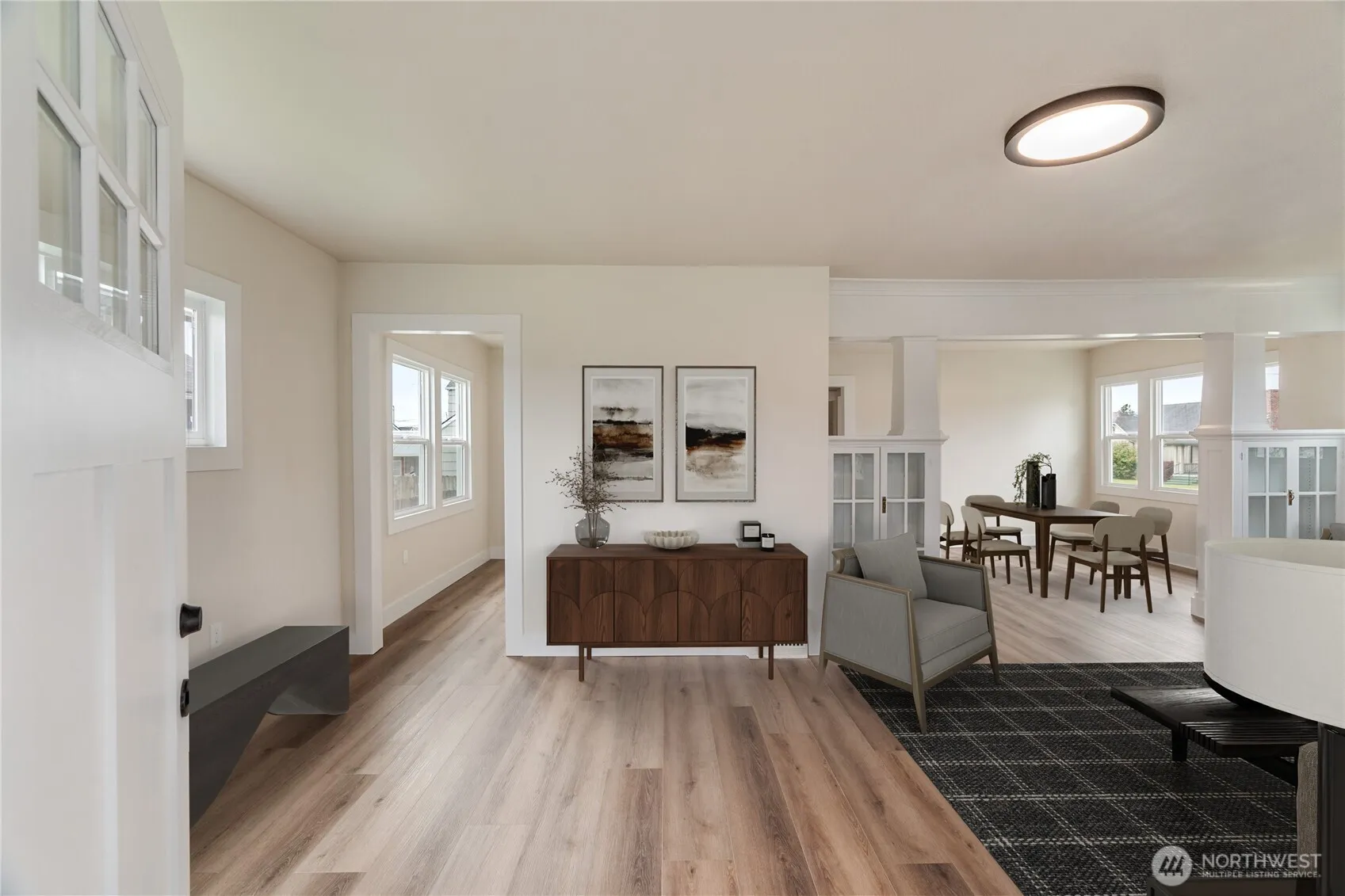 Introducing this 1913, fully remodeled, Craftsmen-style home. The home includes a 4 bedroom, 1.5 bath layout with all new flooring, fixtures, roof, gutters, windows, interior/exterior paint, forced air unit and fully updated kitchen and bathrooms. The main floor includes an enclosed front porch, spacious living room w/ original glass cabinetry and wood fireplace, dining area, office, kitchen w/ granite countertops, primary bedroom, and full bath w/ ceramic tile flooring. The upper level is fully carpeted and includes the 3 other bedrooms, 1/2 bath, additional finished room, and built-in storage throughout. Additional features include a back deck/patio, detached 2 car-garage and unfinished basement with washer/dryer hookups and wash sink.