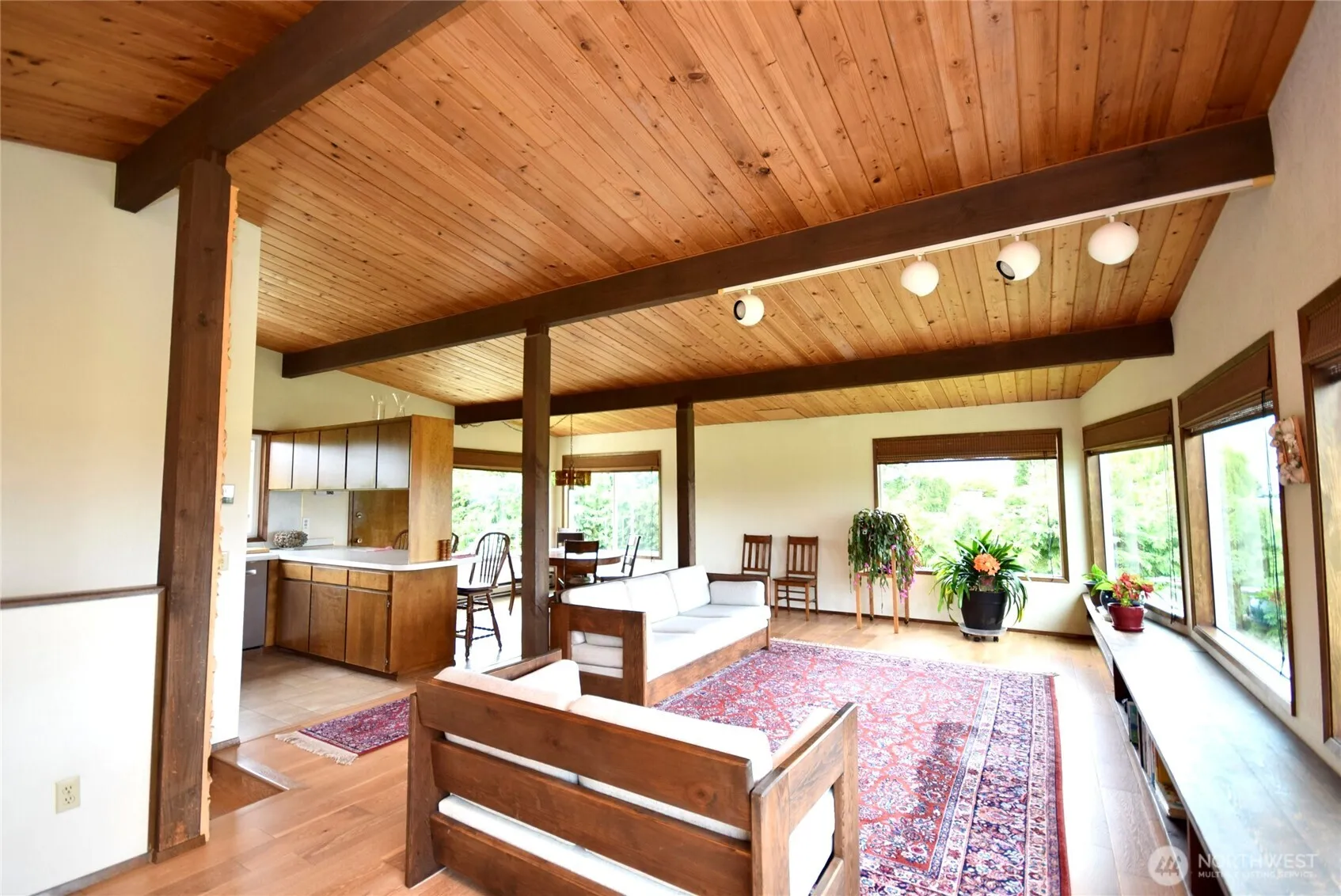 Wonderful water view home on .71 acre with large grass backyard, fruit tree orchard, fenced garden space, pond & garden shed. Just a short distance to the community beach access. 4 bedrooms ( 2 with lofts), 2 baths, living room with wood stove, family room with ductless heat pump, reading nook & wood ceiling. Upstairs has great water views & mountain view deck. Lots of light in every room makes this a wonderful feeling home. Orchard has 1 Italian plum, 1 pie cherry, 2 pears and 7 apples-Transparent, Gravenstein, King, Must, & Yellow Delicious.