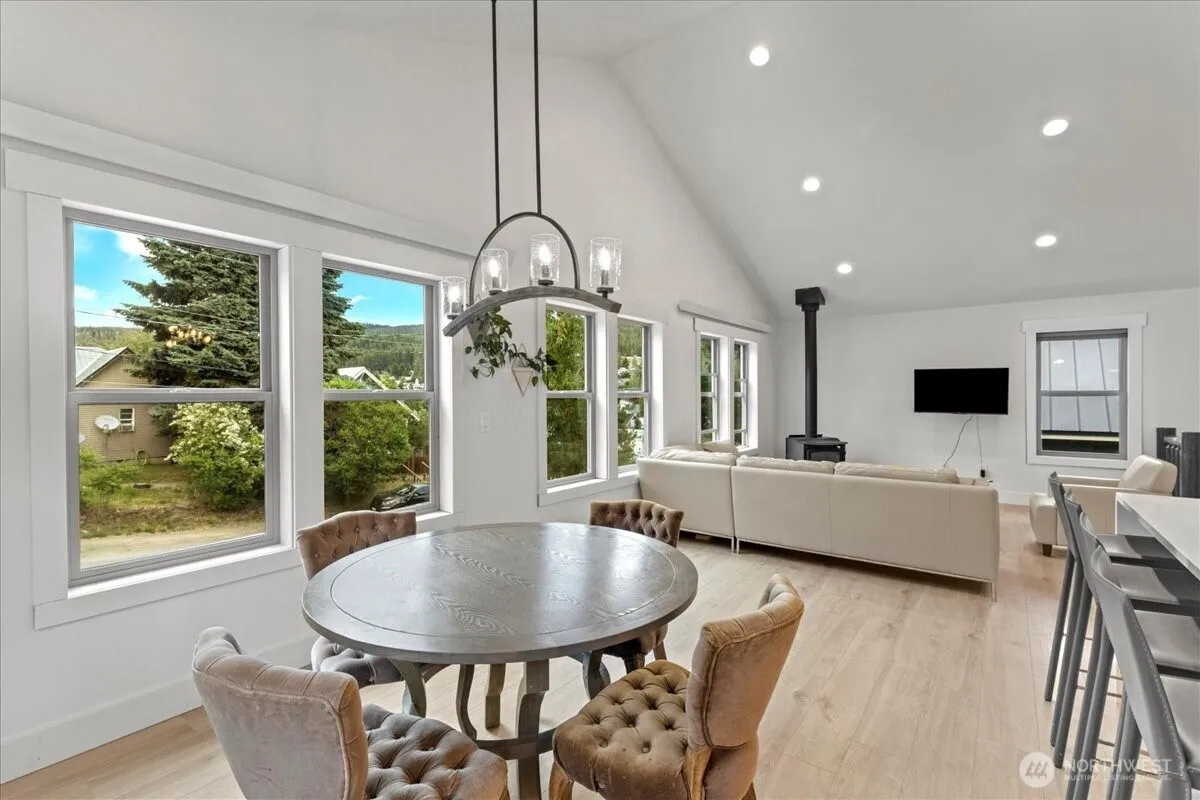 Luxurious Downtown Roslyn property offers exceptional living experience, steps from dining, shops & trails. Nearly NEW construction featuring a spacious great room w/vaulted ceilings, cozy wood stove & abundant natural light from oversized windows. Chef’s kitchen boasts quartz waterfall island, farm sink, & GE Café appliances, complimented by solid-core doors & beautiful wood cabinetry. Newly stained decks & interior paint. Expansive covered patio year-round-overlooking private yard w/mature fruit trees, fully finished garage w/ alley access for DADU/shop potential. Additional highlights include AC, RV parking, ample storage, & Govee exterior lighting. Located just mins from Suncadia & Lake Cle Elum – perfect for full-time living or STR!