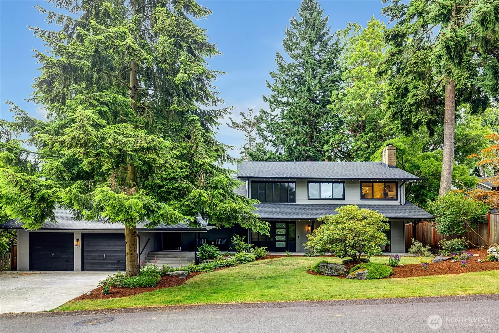 Lovely details await in this beautifully updated Mid-Century Modern home ideally located in the sought-after Mercer Firs community. A dramatic two-story entry, soaring vaulted ceilings & walls of windows fill the interior with natural light and an incredible sense of space. Rich oak hrdwd floors throughout. The remodeled chef’s kitchen is open to the family room with”Nana”glass doors that fully open to create seamless indoor-outdoor living w/access to the deck that extends the length of the house. Lush, mature landscaping is peaceful and adds privacy. Primary suite with renovated en suite 5-piece bath is like a luxury spa at home. Generously sized additional bedrooms up. Just a short walk to Island Crest Park and Island Park Elementary.