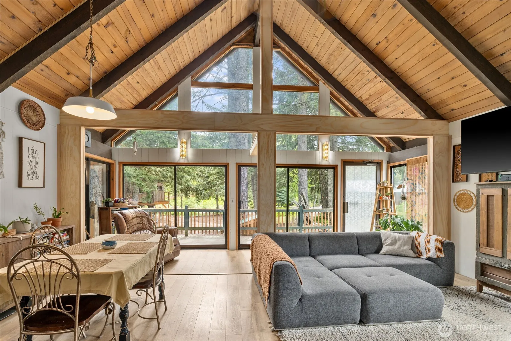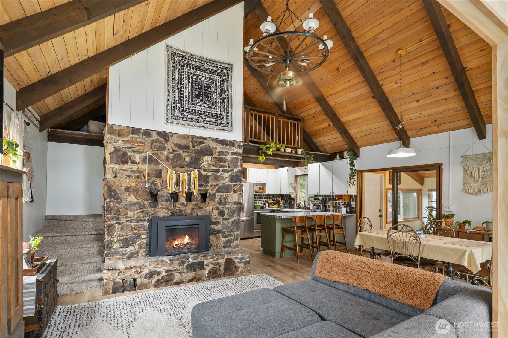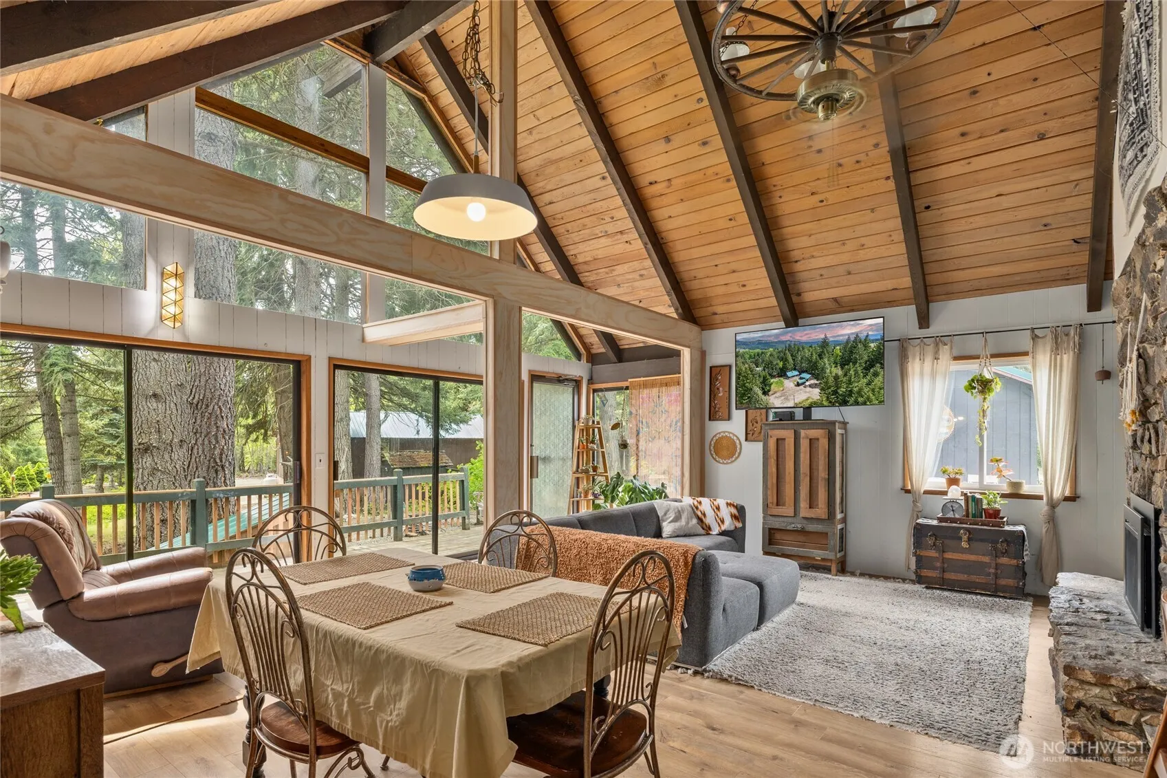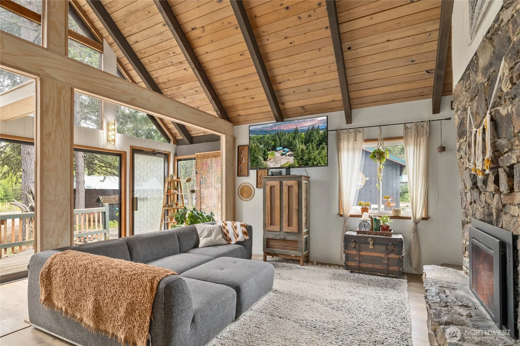 Escape to this stunning cabin nestled along 233 feet of Big Creek frontage including 3 parcels on 1.4 acres! With vaulted ceilings and a stone fire place, this home is inviting and cozy. The main home has 1323sf of living space with an additional 665sf in the flex space complete with a 3/4 bath & kitchenette. Ample room for all your toys in the detached 20×40 shop just off the creek. The tree house perches over the property looking down on the river. There’s a chicken coop, garden and fruit trees too! Have a place to play while you build to suit on third parcel if desired. Whether you’re looking for a weekend getaway or a fulltime home this creekfront oasis is a rare find!