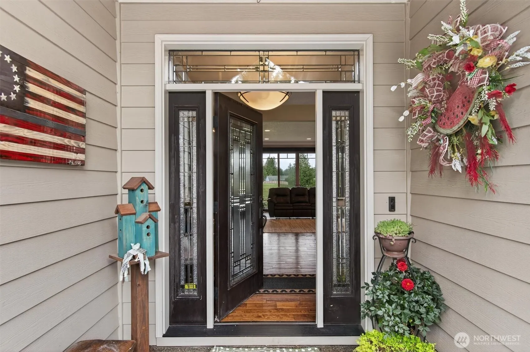 Beautiful custom built, one level home on 1.19 flat acres! 3042 square feet, 3 bedrooms, 3 bathrooms, office and den, central vac, surround sound throughout, new carpet in all the bedrooms, propane fireplace with custom built-ins in the living room, walk-in pantry, large-open kitchen with 2 sinks-perfect for big get togethers. The luxurious primary suite offers a propane fireplace, door to the covered patio, spacious bathroom with walk-in tile shower, jetted tub and walk-in closet with tons of storage. The huge-fully fenced backyard has a covered patio, storage shed and offers plenty of room to build a shop, sprinkler system, room to park your RV and mature landscaping with fountain. All of this in a peaceful setting that’s close to town.