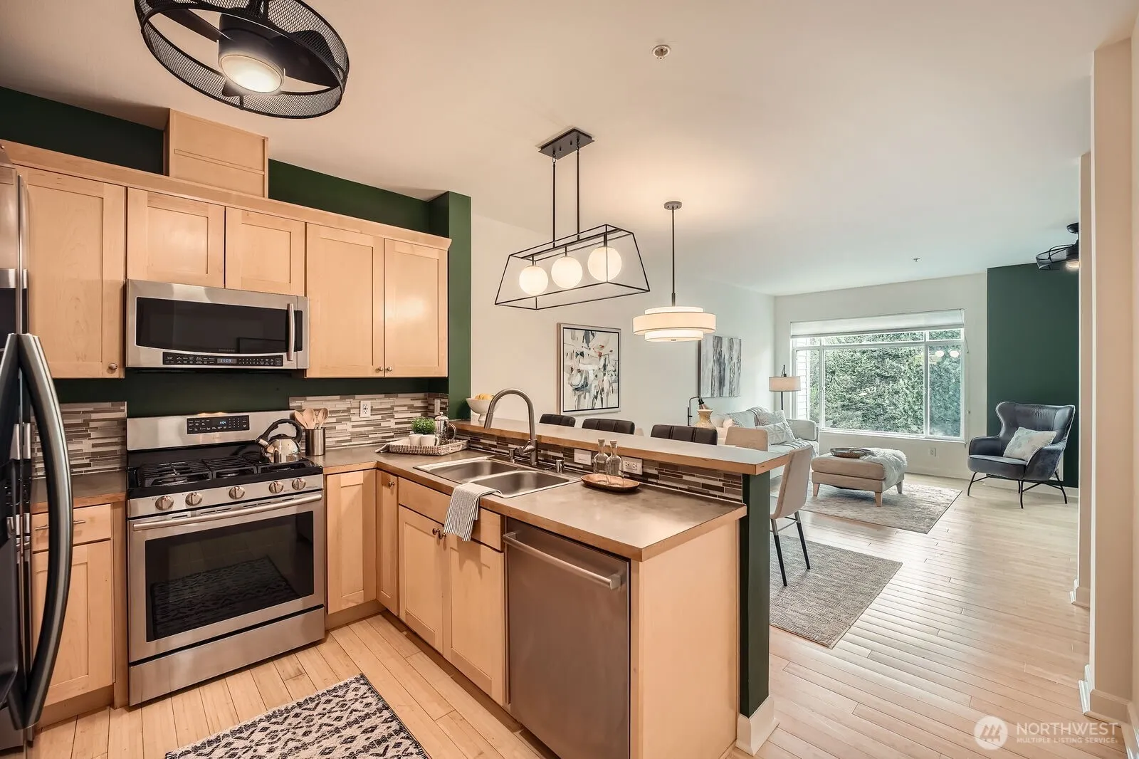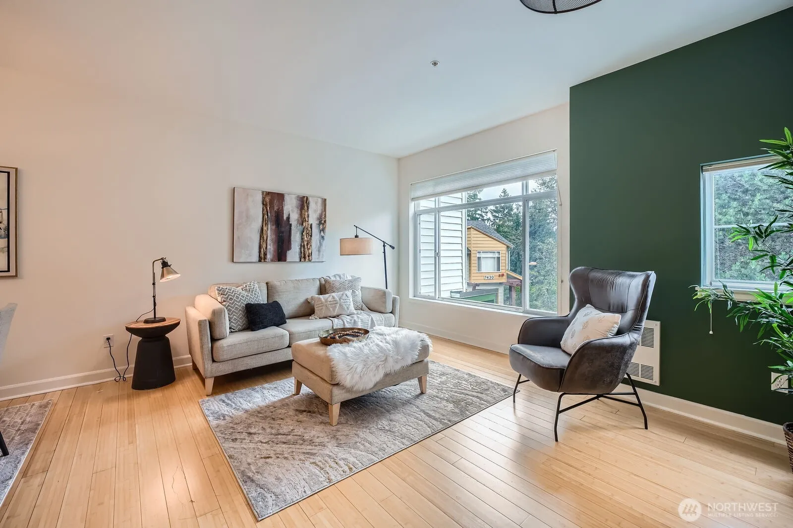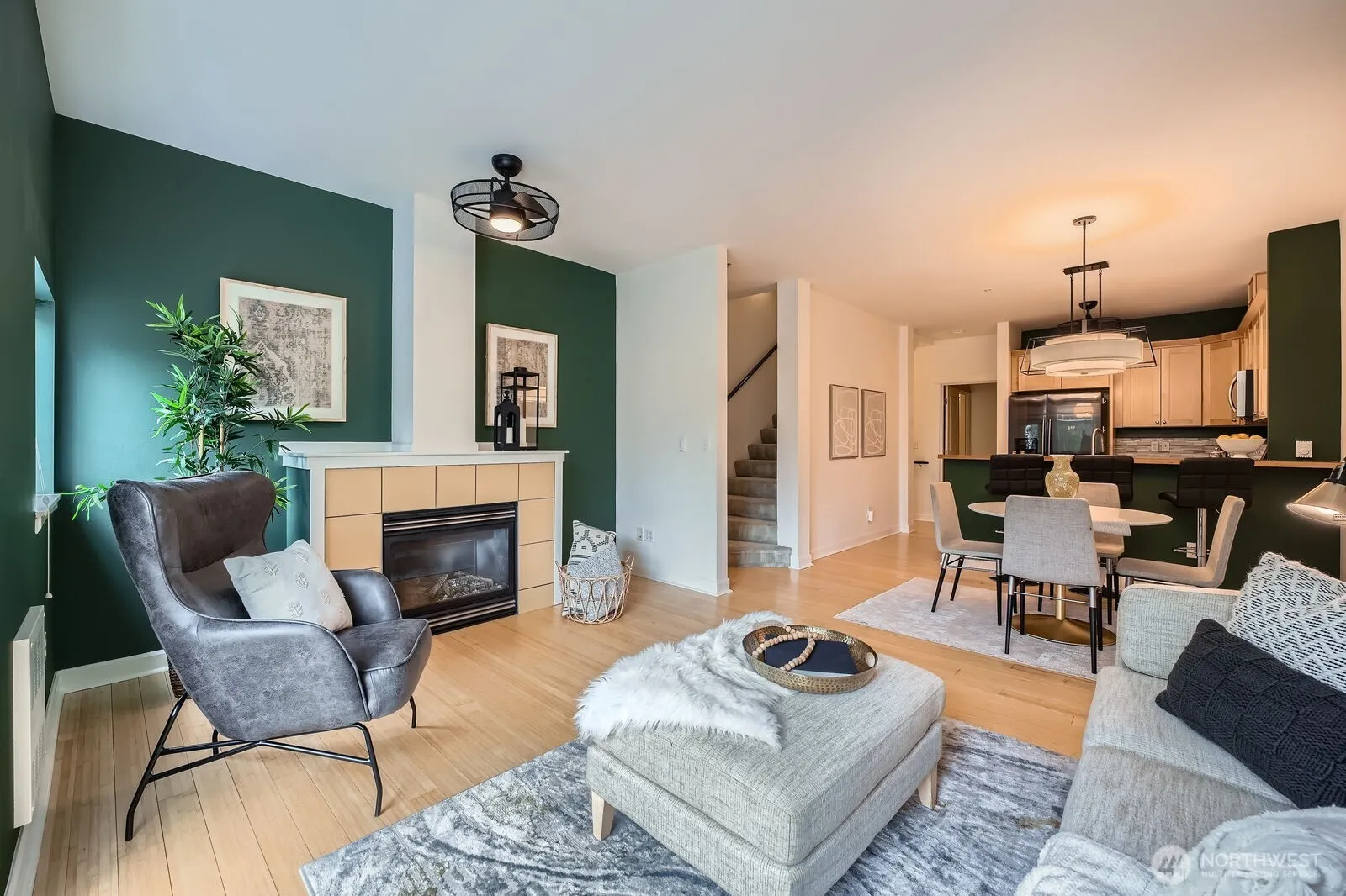 Nestled in the heart of Newcastle, this contemporary 3-story home offers a bright layout w/ thoughtful design & everyday comfort. The main level invites w/ warm bamboo floors, a cozy gas fireplace, & abundant natural light filling the open living & dining areas. The adjacent kitchen shines w/ stainless steel appliances, gas range, maple cabinets, & a stylish tile backsplash—perfect for everyday meals & entertaining. Upstairs, the vaulted primary suite provides a serene escape w/ generous windows, dual-sink vanity & soaking tub. Two additional bedrooms offer space for guests or home office. Enjoy a private patio surrounded by greenery & the convenience of a tandem 2-car garage. Close to trails, parks, shops, Newcastle Golf Club, & I-405.