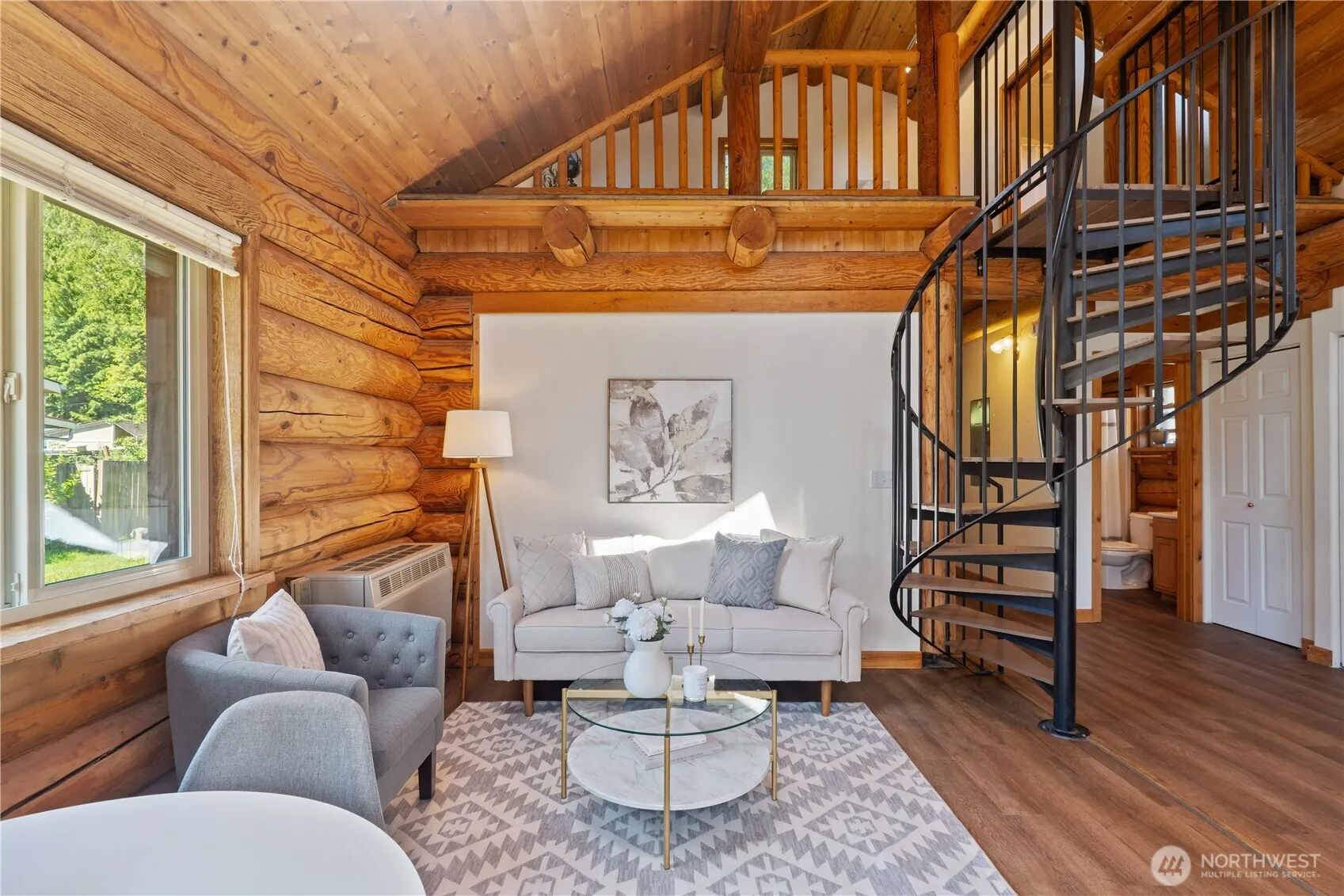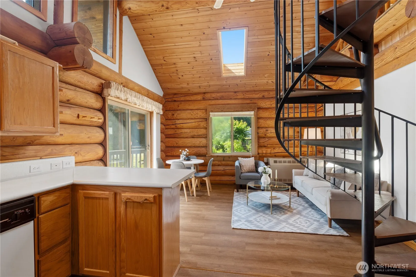 Charming log cabin retreat near Birch Bay! This one-of-a-kind home offers peace and quiet, and is only minutes from both Blaine and Birch Bay. Inside, you’ll find brand new flooring and a new water heater, adding modern comfort to this cozy home. The open layout and exposed woodwork create a timeless, cabin-in-the-woods atmosphere—perfect for weekend getaways or full-time living. The loft, accessible by a custom spiral staircase, overlooks the first floor and offers inviting additional living space. Located just steps from the community waterfront park, you’ll enjoy access to serene shoreline views and outdoor recreation. This Harbor Drive home is a hidden gem tucked away between Blaine and Birch Bay!