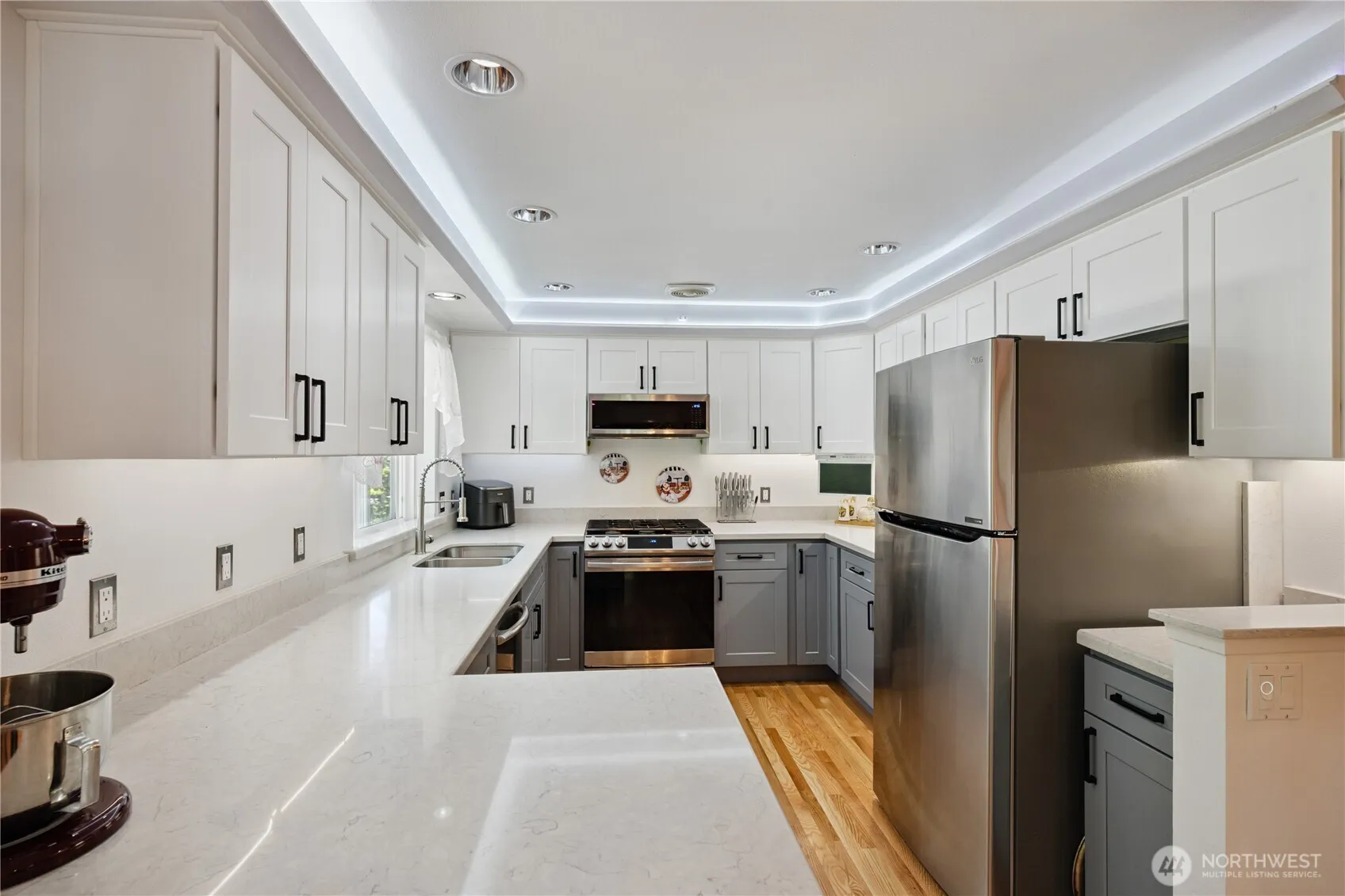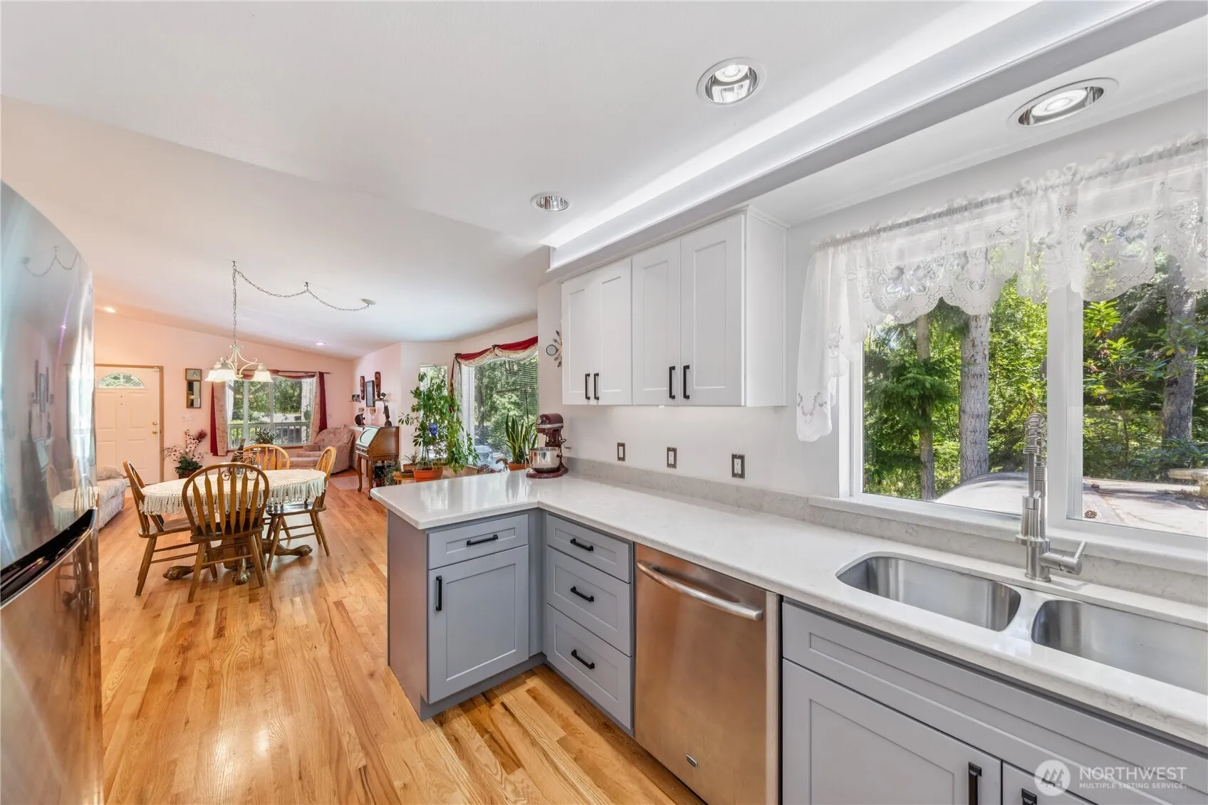 A paradise of tranquility! Step inside this stunning custom home where soaring vaulted ceilings, rich hardwood floors, and an open floor plan welcome you with warmth and light. The bright kitchen shines with quartz countertops, hand-built cabinets and stainless steel appliances. Unwind in the spacious rec room, complete with a huge wet bar—ideal for game nights and gatherings. Equipped with propane and a whole house generator, this home is ready for everything. Outside, find peace and privacy on beautifully manicured acreage complete with detached garage, 50′ x 20′ heated shop, and full RV hook up. Relax on the back patio and enjoy the epitome of privacy. This is more than a home—it’s a lifestyle of comfort, space, and freedom.