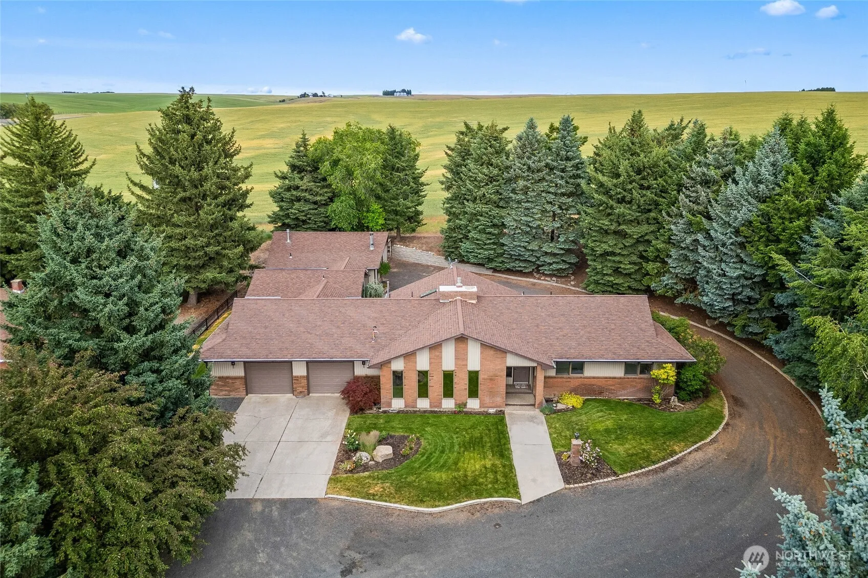 Discover the modern charm this home has to offer with all its natural lighting, covered with custom blinds, open kitchen with brick accent work, gas fireplace in living room area and large bonus room with gas stove, perfect for a family room, office and more. This home offers 3 bedrooms, 3 bathrooms, formal dining area, laundry area, plenty of storage and attached garage. The master bedroom features a large bathroom with walk-in shower. Property offers an oversized detached shop perfect for projects, complete with a wood stove and already plumbed for a bathroom, low maintenance landscaping and sprinkler system. Sellers have kept the home updated throughout the years including updated gas furnace and central air-conditioning in 2024.