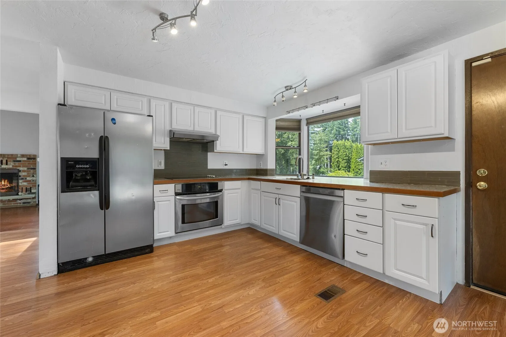 Beautifully maintained 3BR, 2BA home with fresh interior paint and a light-filled, functional floor plan. Vaulted ceilings and large windows brighten the living room with wood-burning fireplace. Spacious kitchen with eating nook opens to the family room with propane fireplace. Formal dining, skylights, and great natural light throughout. Primary suite features a private deck, garden tub and dual closets. Two additional generous bedrooms. Enjoy the fully fenced backyard with mature landscaping, Trex decking, and terraced yard. Move-in ready with charm, comfort, and space inside and out!