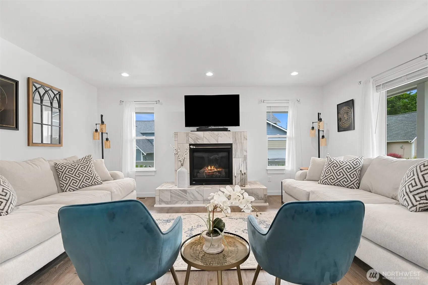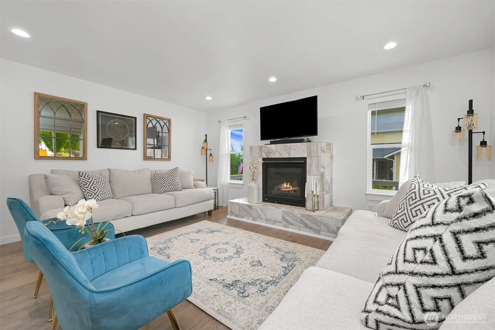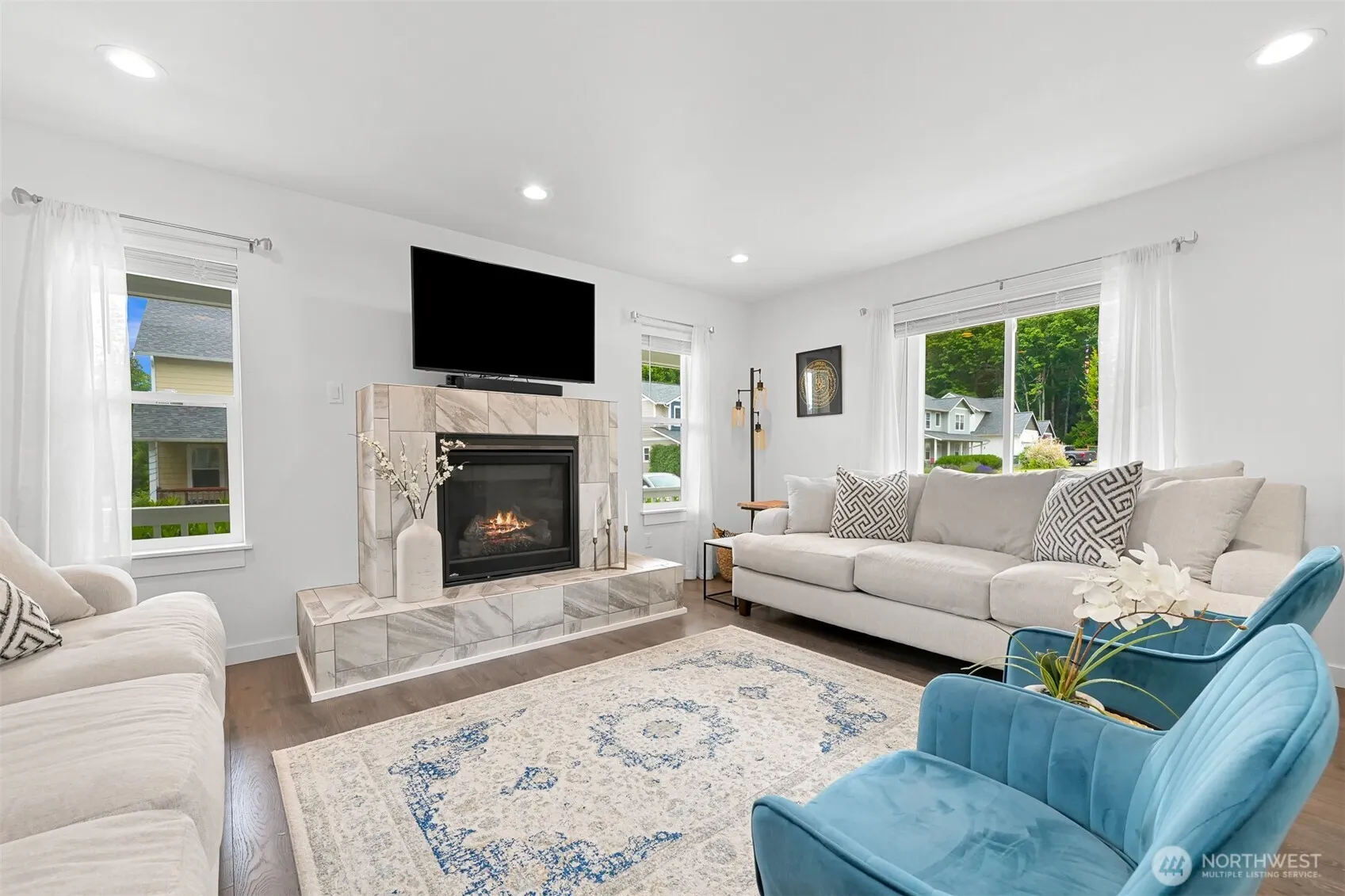 Spacious 5-bedroom home built in 2018, ideally located on a quiet loop road across from Lincoln Park. Enjoy the welcoming wrap-around covered front porch and 2-story entry. The open-concept kitchen/dining/family room is perfect for gathering, while the separate living room with gas fireplace offers a peaceful retreat from the hub. The kitchen boasts quartz countertops, full-height cabinets, and stainless steel appliances. Desirable main-level bedroom with attached full bathroom. Durable, water-resistant woodgrain laminate floors throughout the main level. Upstairs, the primary suite offers a luxurious 5-piece tiled bathroom. Fully fenced, level yard with garden shed.