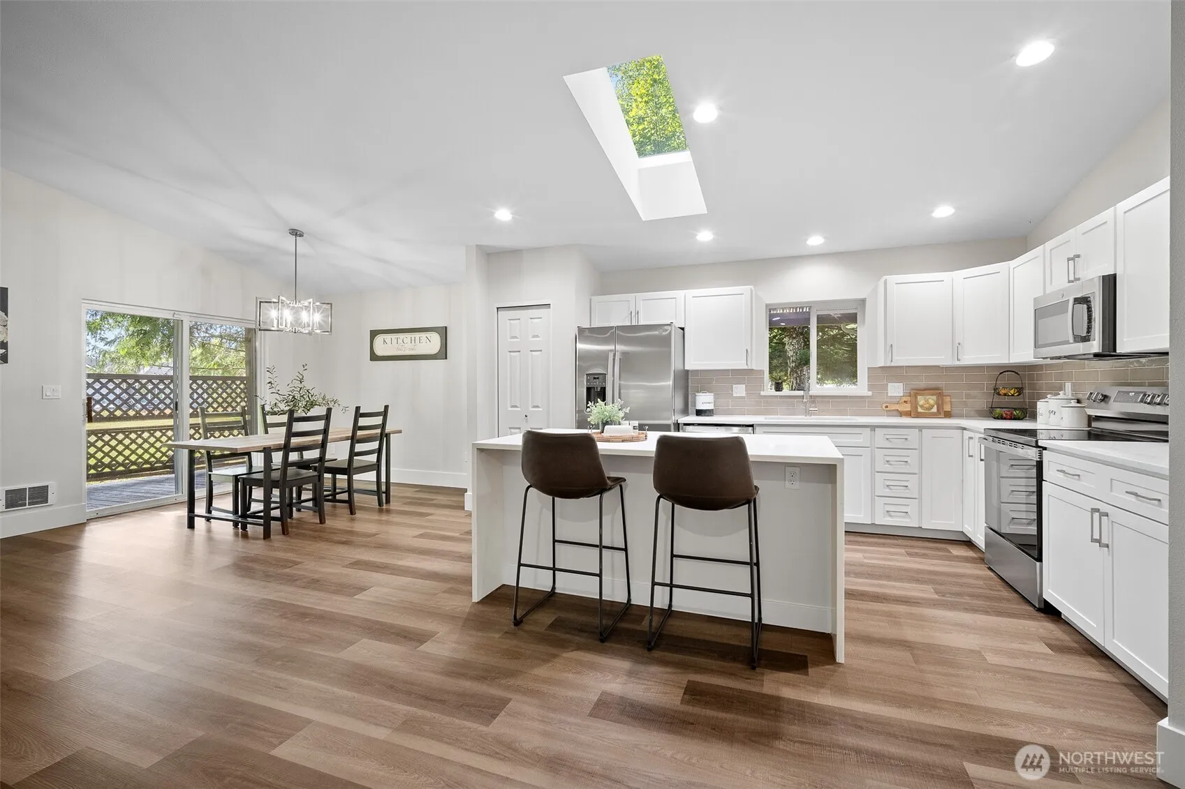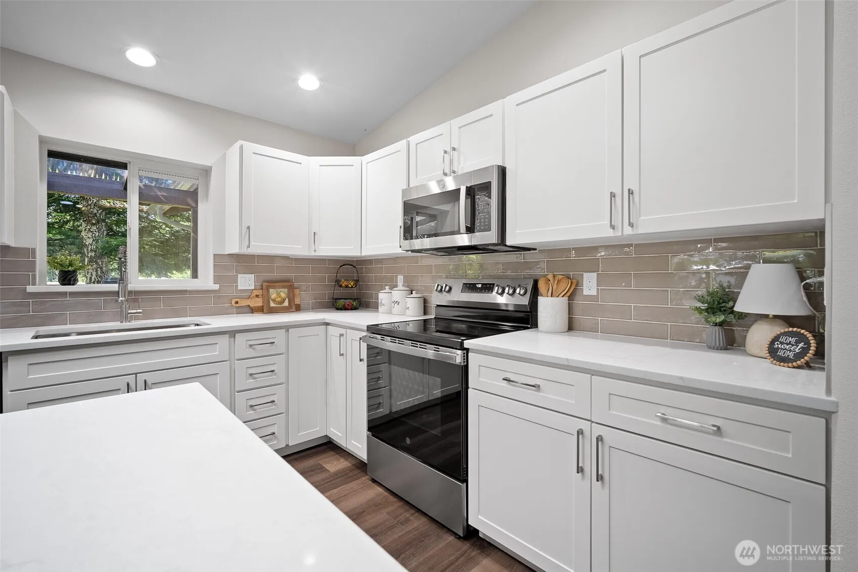 Move in ready beautiful home 1,558 sq ft, 3 Beds, 2 Baths. Vaulted ceilings open concept, large living room & modern fireplace. Kitchen included large island quartz countertops, lots of cabinets for storage, new S/S appliances. Primary suite w/ double closets, bath has double sink & walk in shower. 2 additional bedrooms W/ large closets. Enjoy the backyard porch with mature trees, low maintenance landscape. New floors, new paint, new roof, gutters & water heater. RV parking. Storage shed.Covered porch with new roof. SAVINGS with Dylan Langei at Evergreen Home Loans .75% Lender Credit & $7,500.00 Seller Credit when preferred lender used. Special Financing offering an incredible 5.75 % interest rate through a special seller credit program