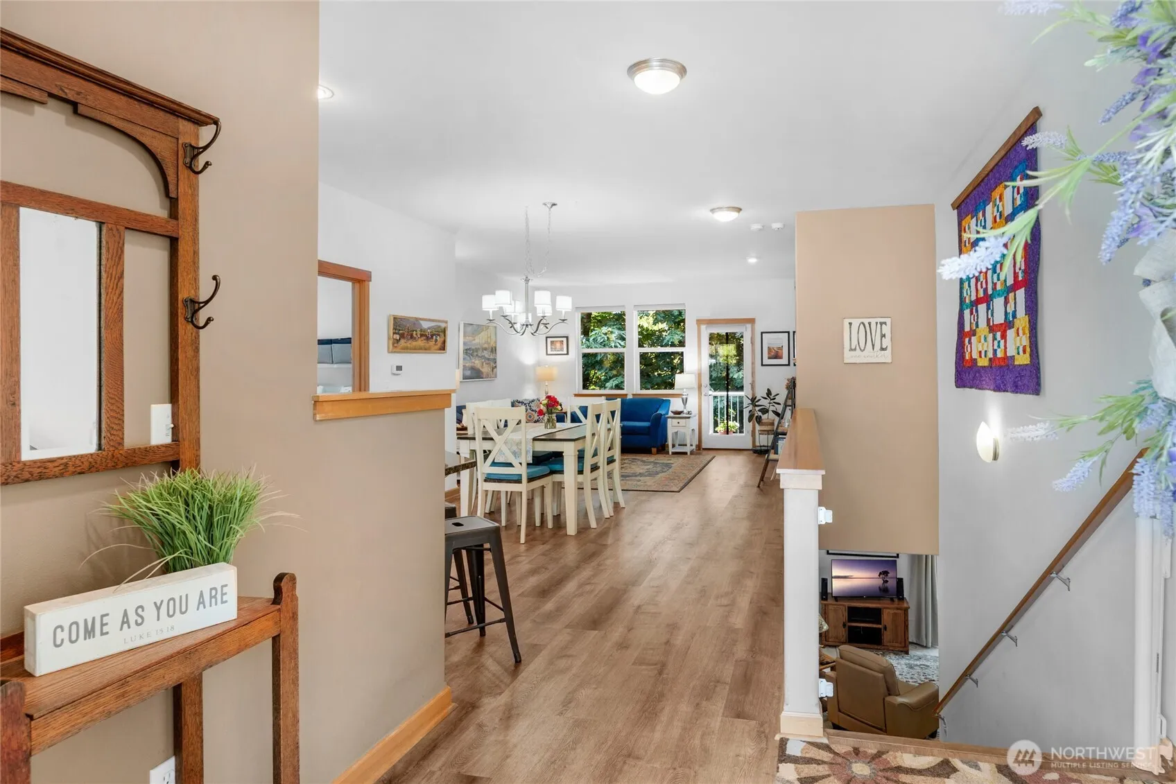 Better than new Craftsman home with 3 bedrooms and 3 bathrooms. The huge primary bedroom, the kitchen, the laundry room and living room along with a guest bath are all on the main level. The entry is a beautiful slate tile, there is new luxury wood grained vinyl floors, granite counter tops and high ceilings. The gas stove, microwave, refrigerator and a new Bosch dishwasher stay with the home. Downstairs there are 2 more generous bedrooms, a full bathroom and a wonderful unfinished storage room. Outside there are 2 decks, and a fenced backyard that backs up to a greenbelt. There is a wonderful breezeway between the home and the detached garage for those perfect morning coffees. The home was just painted 2 years ago!Close to shopping and I-5
