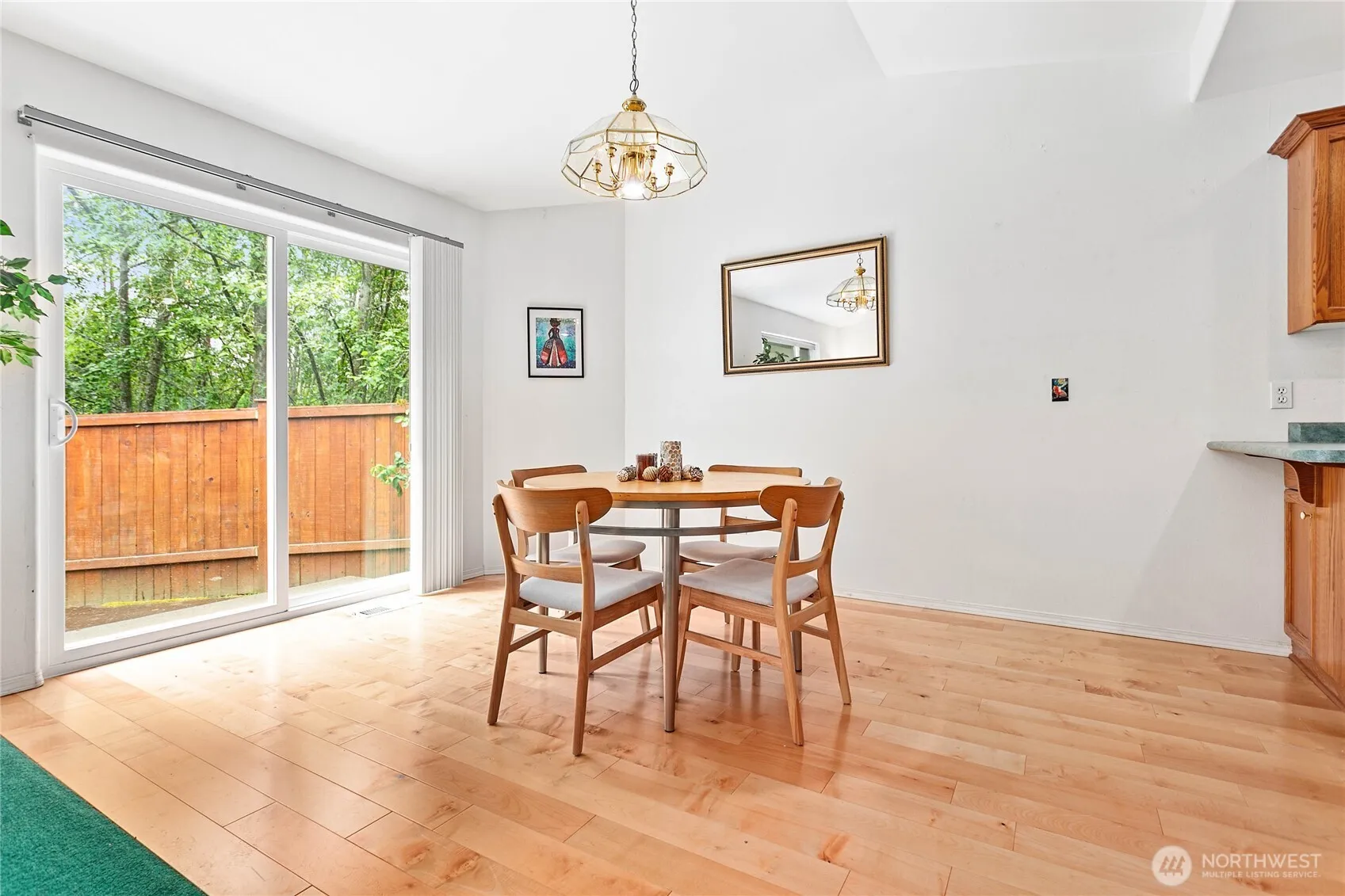 Cheerful one level 3 bd, 2 ba sits on the only Anchor Manor lot w/dedicated green space & park on multiple sides offering peaceful privacy. New roof and gutters, 2022; A/C, heat pump and furnace 2021-2022. Open living/dining space w/vaulted ceilings, new slider to patio, treed views, fully fenced backyard. Engineered hardwood flooring in dining and kitchen. Extra-large primary bd also offers access to the backyard w/primary bath having a jetted tub and new flooring. Enjoy the vibrant and playful interior as it is or put your personal touches in place. 420 sq foot garage. Low-key HOA. 7 mins to Blaine, 4 mins to BBay, 13 mins to Ferndale, 17 mins to Bham. Pre-inspected.