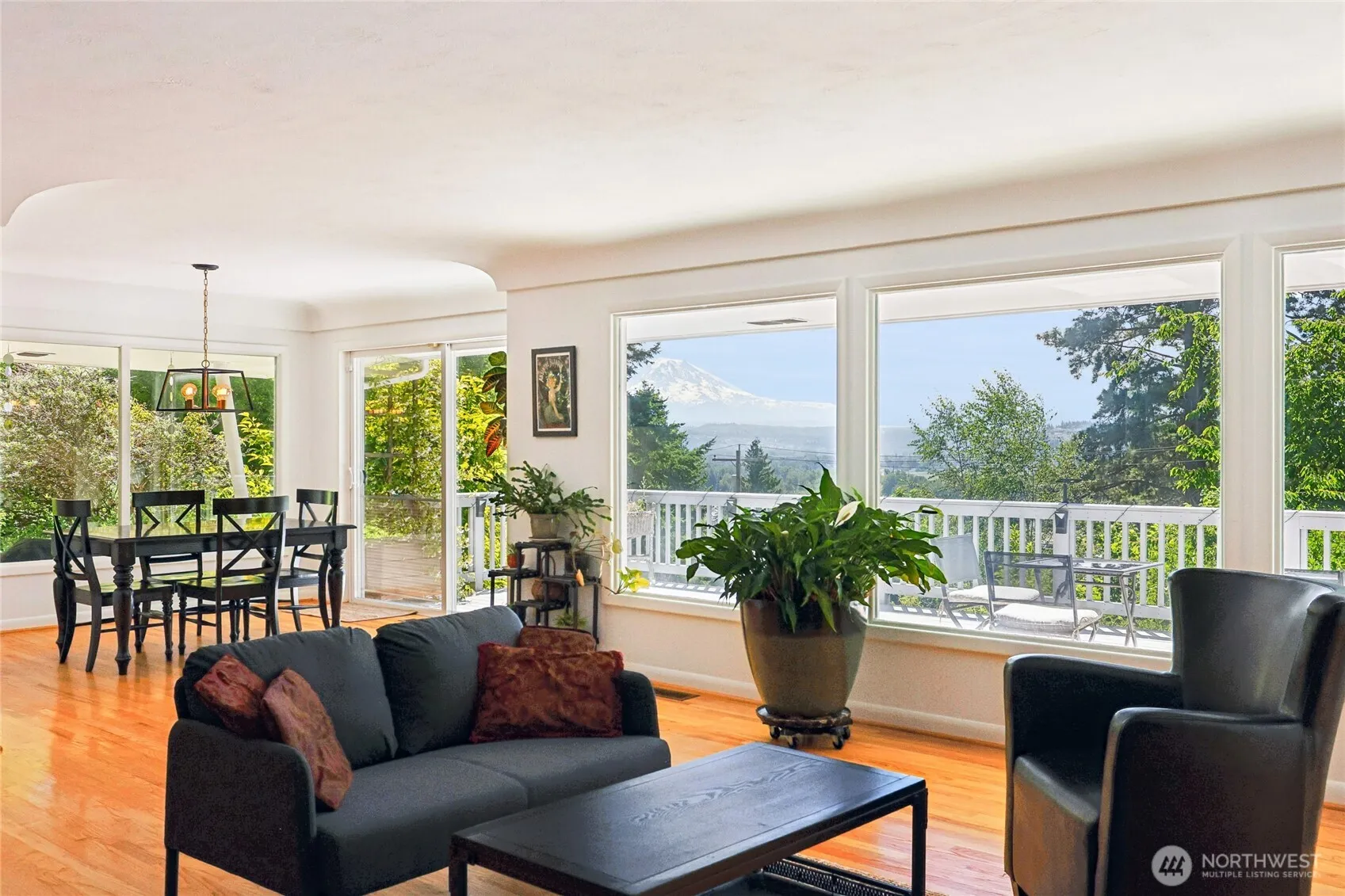 Mid-century park-like oasis in desirable Edgewood w/ coved ceilings & mountain views from living room, primary BR, oversized deck & basement. Double/triple pane windows, large fireplaces, exposed brick, red oak hardwoods. BBQ patio w/ valley view & midcentury stone terracing. Walkout basement feat. terra cotta tile flooring, flagstone patio, huge rec room, fireplace, pantry/wine cellar, workshop. Fully fenced & irrigated yard w/ plenty of space for hobbies, animals, vehicles & toys. Productive fruit & nut trees. Beautiful year-round blooms. Heat pump w/ air cleaner for year-round comfort. Long private driveway w/ two gated entrances, easy access to freeways & Sumner Sounder train for quick commute. See remarks for updates & grounds map.