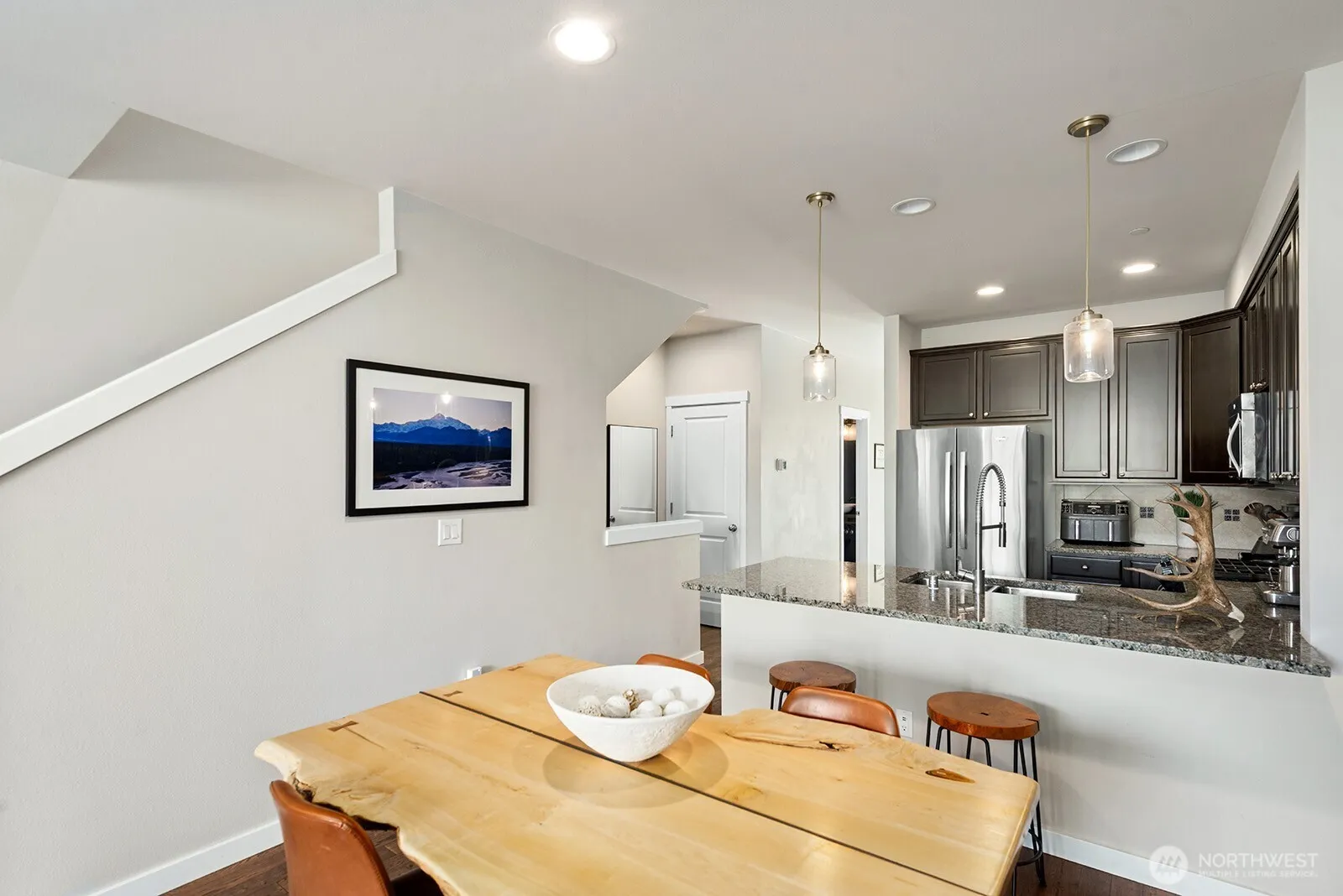 This single family Ridgestone Townhome on Snoqualmie Ridge has been meticulously maintained & offers stunning views of the Cascade mountains, has a private/fully fenced backyard, is walking distance to parks, grocery/dining options & is exceptionally quiet & serene. Main level is an open concept design w/spacious kitchen featuring stainless steel appliances & bar seating option, dining & living area w/9ft ceilings, hardwood floors, cozy fireplace, 1/2 bath, office/flex space & access to private patio & back yard. Upstairs you find 2 generously sized primary suites; one w/mountain views, an oversized 3/4 bath featuring a double vanity & the other w/a full bath & overlooking the backyard. Garage features heated workshop & additional storage.