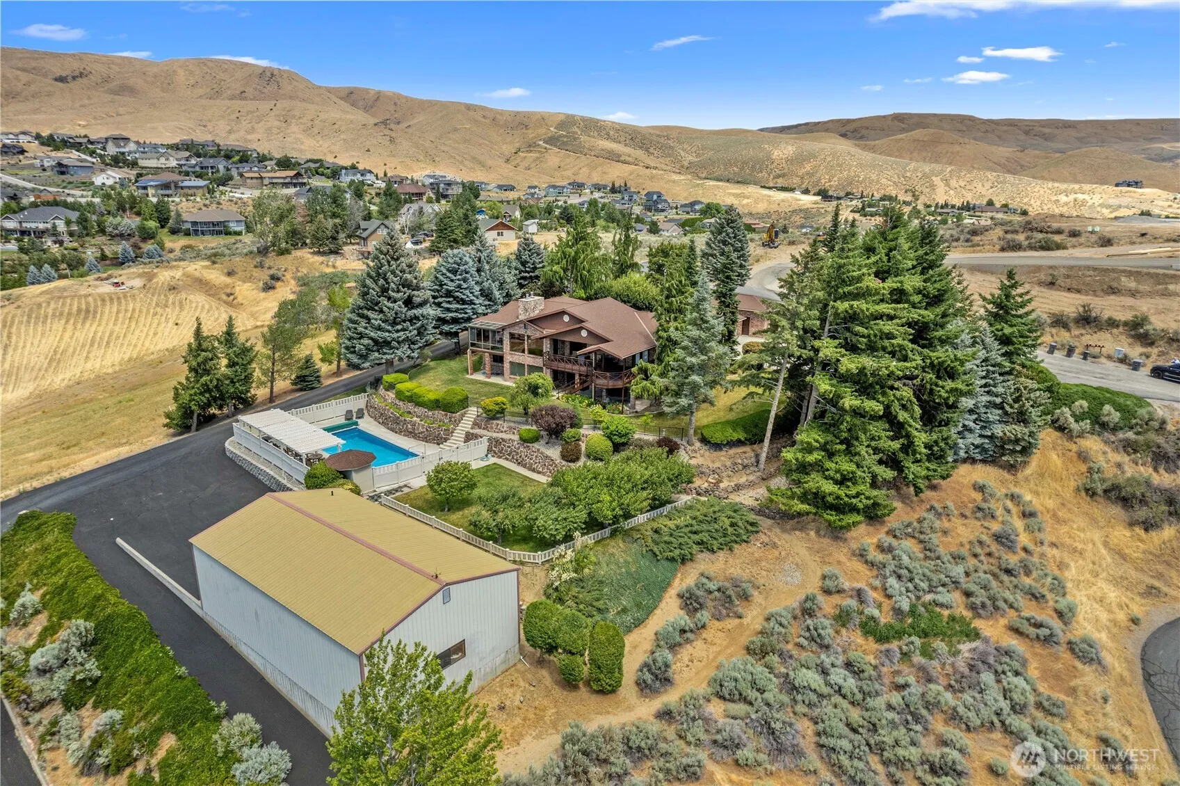 Come see this stunning Sunnyslope property at the top of the hill. Custom Brick Daylight Rambler on .95 of an acre! Beautifully landscaped yard with Irrigation water, and mature shade trees. This home is a Complete package with a million dollar view, in ground Pool, Privacy, plus 2 Detached Shops. Enjoy sweeping views of the Wenatchee Valley and Cascade Mountain Range. The spacious updated kitchen includes a wet bar, granite counters and double ovens, perfect for entertaining. A large great room with ample space. The primary suite features an updated bath with large walk in shower & a private sunroom with a hot tub viewing the Cascades. Lower level fully finished large open recreation/hobby room plus additional guest rooms.