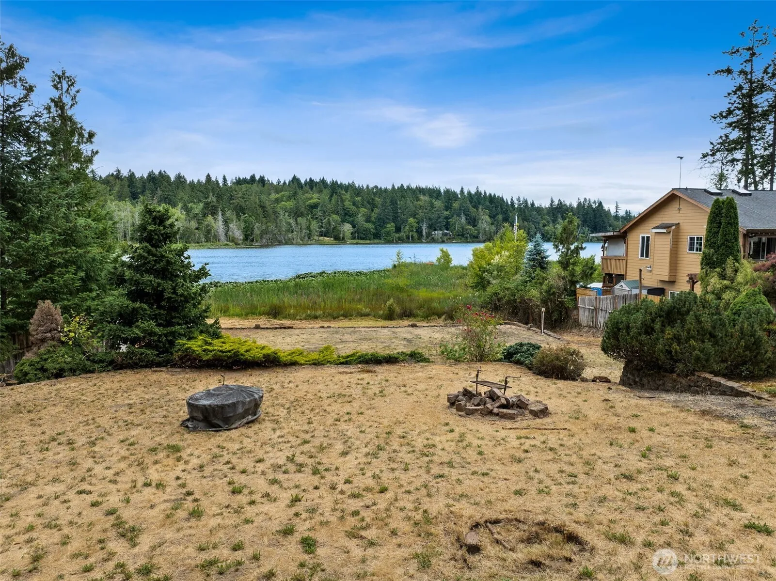 Situated on over 1/2 acre of waterfront property, this lot offers the perfect canvas for your dream home or an ideal R.V. retreat. Enjoy swimming, fishing in a stocked lake, or water skiing! This property features no bank waterfront W/grass beach area & dock! Nestled in the quiet Finger Cove, away from fast boat and skier traffic. 2 level RV pad sites W/decorative landscaping blocks. The lot spans 300′-400′ deep by 102′ wide, featuring a fully fenced perimeter W/large gate for privacy. This property also offers a boat ramp just 100 yards away, electrical power on-site, and is only 5 minutes from Penrose Point State Park, ideal for walking, biking, and outdoor recreation.
