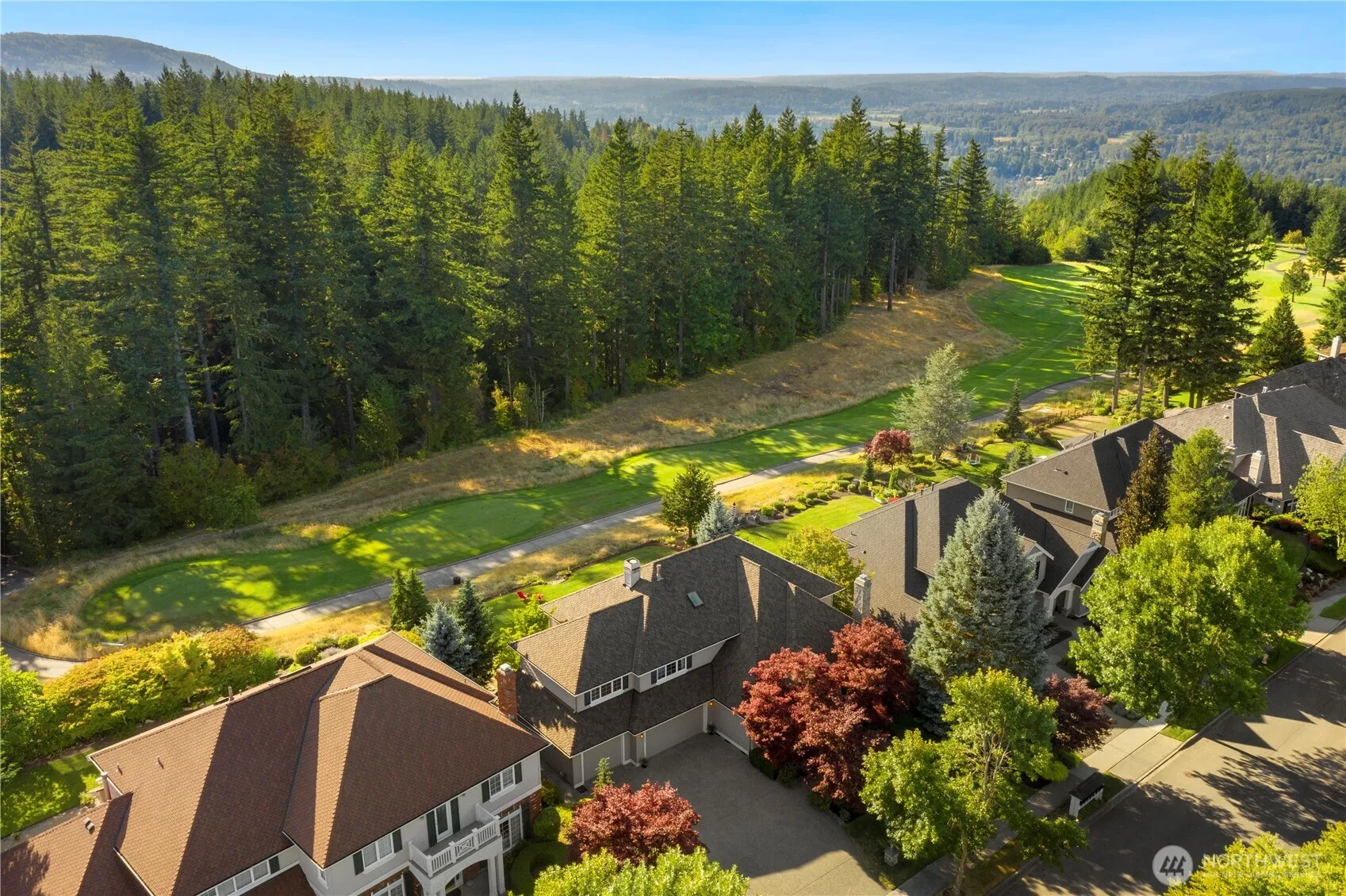 Nestled on a private .26-acre lot along the 5th tee of The Club at Snoqualmie Ridge, 6609 Cascade Ave SE offers sweeping tree-lined golf course views and stunning sunsets. This impeccably maintained two-level home features 4 bedrooms, a bonus room, vaulted ceilings, hardwood floors, and sun-filled living spaces that blend comfort with elegance. The kitchen boasts stainless steel appliances, gas cooking, and French doors to a beautifully landscaped yard. The primary suite includes breathtaking views, a 5-piece bath, and a walk-in closet. With A/C, newer roof, home office, extra-deep 3-car garage, large driveway, and a park just across the street—this home checks every box!