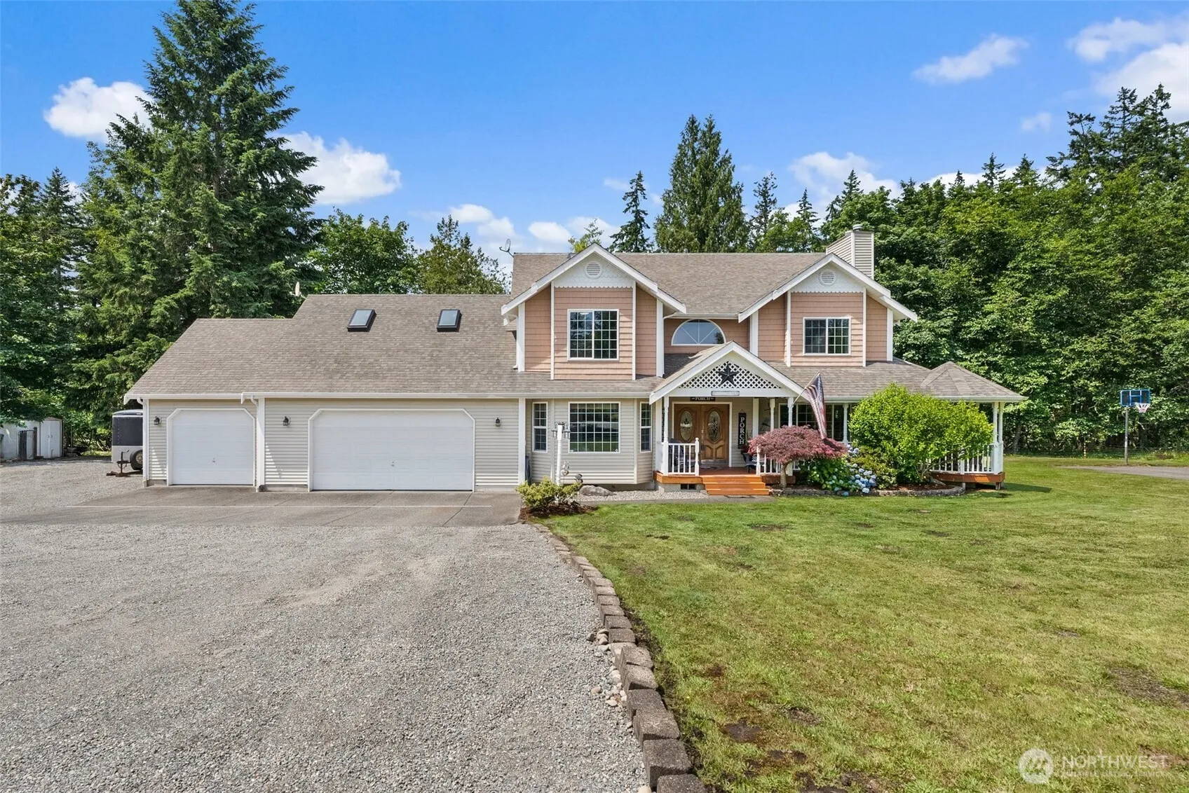 Spacious 4-bedroom, 2.5-bath home on over 5 private, fully fenced acres. With 3,000+ sq. ft. of living space, this property features a large wrap-around deck—perfect for entertaining or relaxing while enjoying serene territorial views and a stunning glimpse of Mt. Rainier. The expansive lot includes a full-size sports court and a 40×40 finished, heated shop with an enclosed RV bay, offering endless flexibility for storage, hobbies, or home-based business needs. Inside, the layout provides comfortable living with generous bedrooms, open common areas, and ample natural light. Whether you’re seeking privacy, space to roam, or versatile functionality, this unique property delivers it all in a peaceful, natural setting!