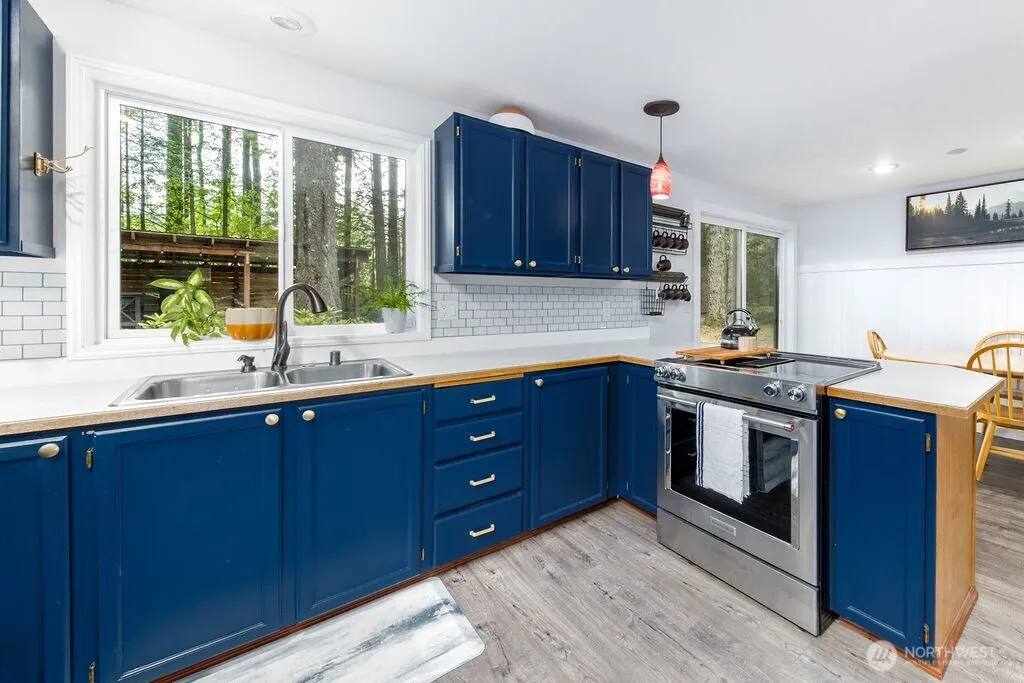 Enjoy stunning sunsets from the back deck of this private 2+ acre North Bend retreat! This beautiful home features an updated open concept kitchen that shines w/ navy & gold cupboards, new appliances, breakfast bar & eating nook. Primary suite boasts walk-in closet, remodeled bath w/ custom tile, making it the perfect space to relax. Bonus space upstairs adds flexibility. Cozy up to the wood-burning stove or head outside to the covered BBQ area. RV pad, garden hed & lean-to offer tons of utility. Generator ready for peace of mind. Adventure awaits just minutes away at Rattlesnake Lake, Iron Horse & Snoqualmie Valley Trails. Unobstructed territorial views & close proximity to town complete the package!