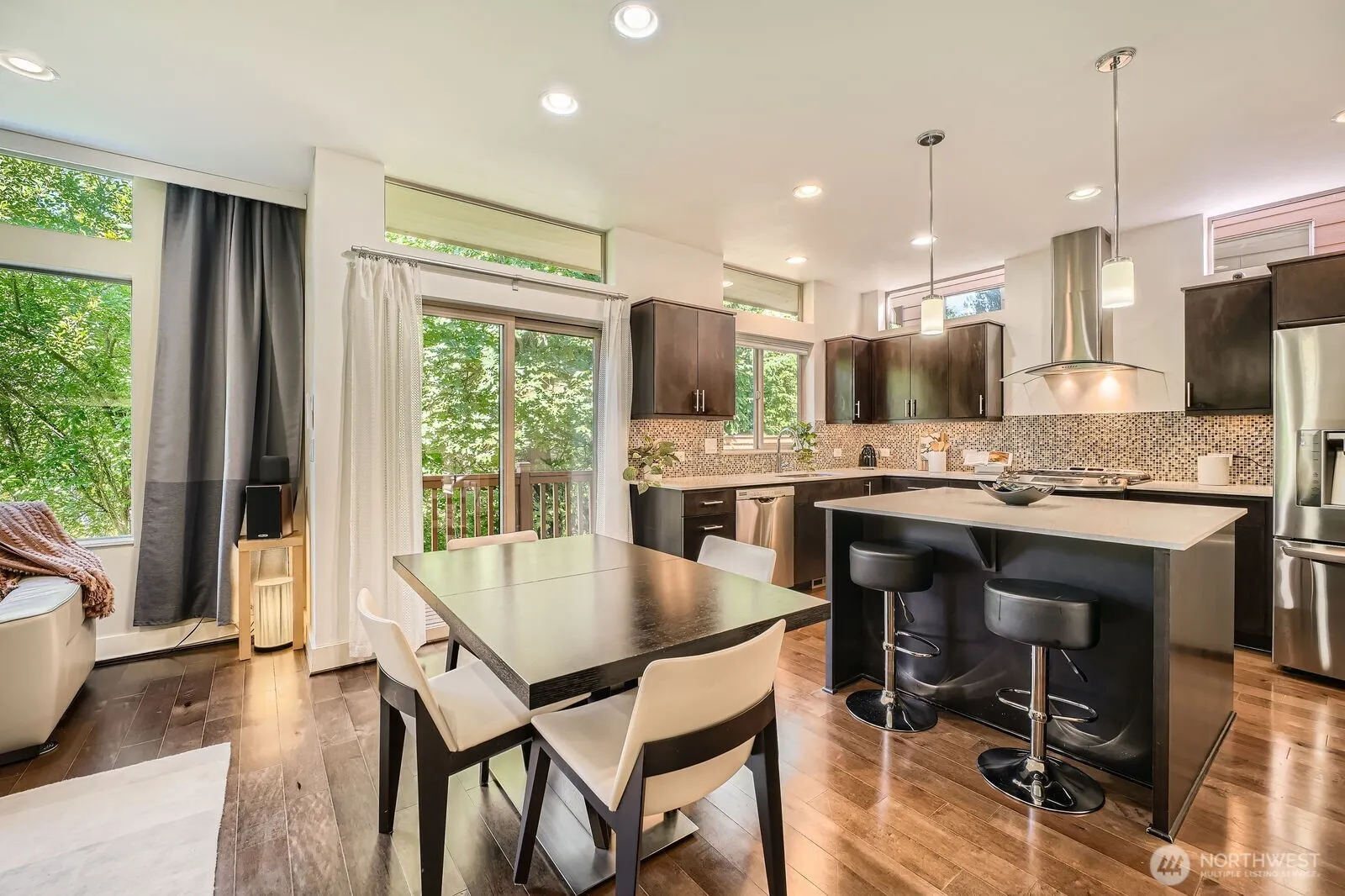 Nestled in the Trails community in Newcastle next to Lake Boren is an offering of modern and comfortable living. The prime location is close to Bellevue and within all of the walking trails of Coal Creek and Cougar Mountain. With a big island in the kitchen and gas fireplace at center stage, no one misses the excitement of daily life in this open concept great room. With beautiful hardwoods on the main there is less time cleaning and more time enjoying. Pop out to the deck for morning sun! The primary suite with a walk-in closet is the oasis you are looking for. Situated on a private protected Greenbelt there is all the natural light and beauty right at your windows. Enjoy the complete lower level suite with access to the backyard.