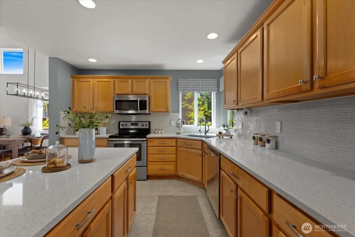 A symphony of intention, orchestrated for a year-round oasis. 4 bed+bonus/5th bed sanctuary is primed for gathering & relaxation: A/C, hardwoods, stone counters, fire pit & hot tub, & spa-inspired touches! Sun-drenched floorplan, w/grand spaces & multi-generational opportunity: main floor bedroom + main floor bath w/shower. Luxe primary retreat w/vaulted ceiling features a stunning en-suite, & dual closets. Pro landscaped yard, w/pollinator-friendly design & all-season beauty. Tree-lined community + a short stroll from the Cov. Comm. Park (sport fields, playground, summer concerts, movies, & more!), Aquatic Center, & schools. Quick access to 18, Downtown Cov., Maple Valley, & upcoming Lakepointe! Incredible storage & parking. Pre-inspected!