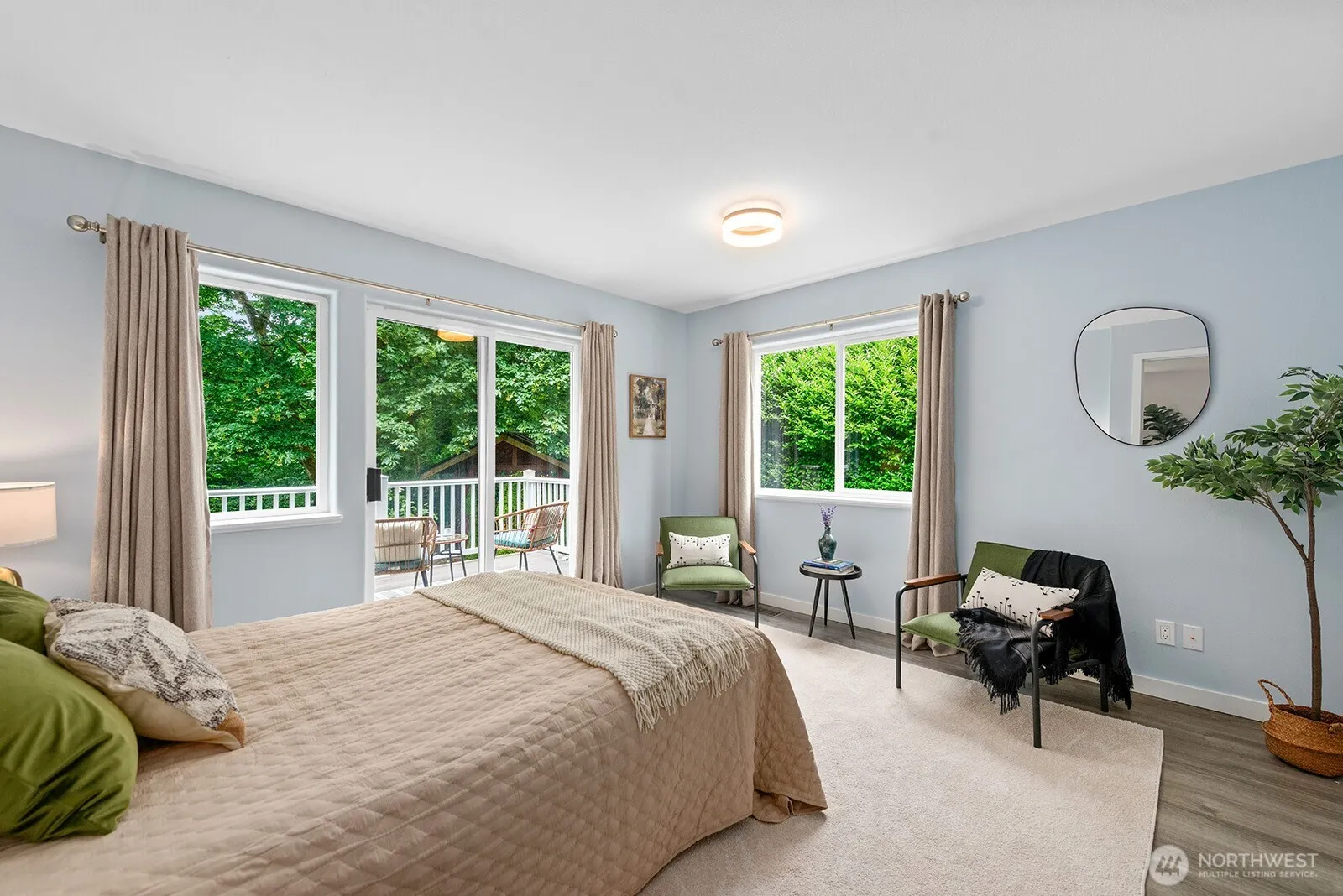 Pristine sylvan acreage with western sunset view sets the stage for this nearly 3,000 sq. ft. 3BD/3 BA retreat in a small, gated enclave. Enjoy generous & flexible living & sleeping spaces with quality finishes of travertine-tiled baths, vaulted ceiling, cherry floors & cabinets and a lower level recreation/media room complete with a bath & separate entrance. The versatile outdoor loggia is perfect for year-round enjoyment for outdoor cooking, games & entertainmet complete with piped gas, power, water, heat & flat screen TV. Trails with footbridges wind through the wooded ravine & stream below, rich with Northwest native growth. A rare blend of comfort, style, and nature—this is more than a home… it’s a place to renew. Nearby beach, too!