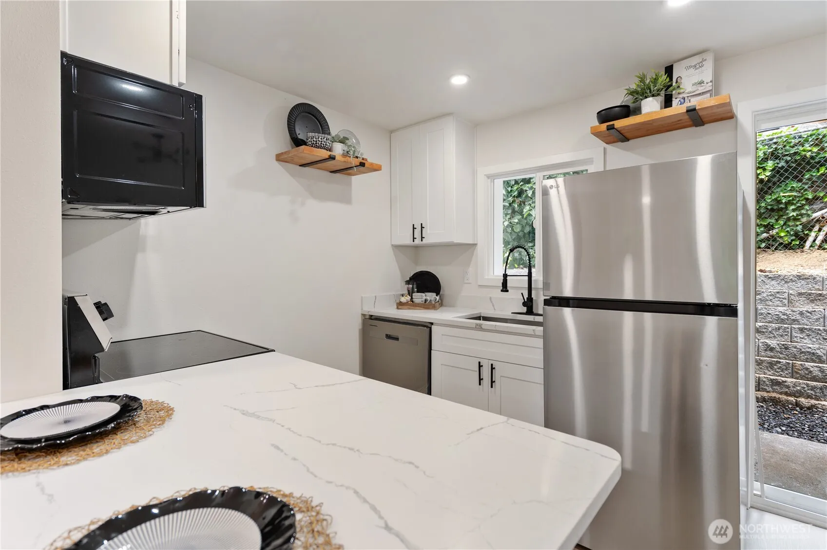 Welcome home to this beautifully updated with an open floor plan, this home features brand new double-pane windows, new siding, and a stunning kitchen complete with stainless steel appliances and marble countertops. Durable LVP flooring runs throughout. The deep one-car garage includes a new door and provides ample space for a vehicle plus workshop or storage. A partially fenced yard adds privacy, and you’re less than a mile from Island Lake Park—ideal for outdoor recreation.Conveniently located just minutes from Hwy 303, with quick access to Silverdale and Hwy 16 for north or south travel. Commute with ease—less than 15 minutes to Bangor, under 10 to Keyport, and just 20 minutes to PSNS. Schedule a showing now, this one won’t last long!