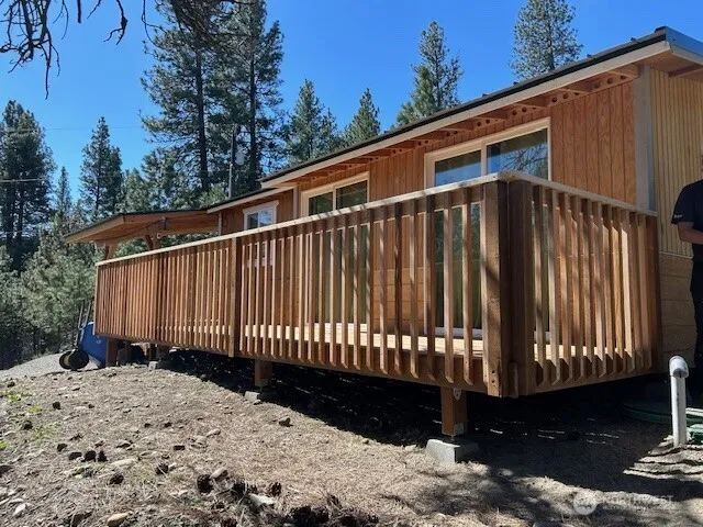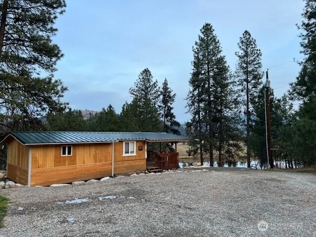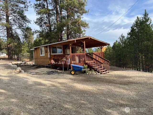 Enjoy the mountain and small private lake views on 4.5 acres fenced and gated entry features 1 bed/1bath cabin with sliding glass doors out to wrap around deck, open floor plan kitchen living room area with sliding glass door to the sitting deck. Large covered deck from main door for entertaining and enjoying the lake view in summer and winter. recent addition, framed, rough in plumbing, rough in electrical, 3 frost free faucets, 1 full hook up RV space, 2nd RV space with electrical and water. Little Red shed has power and A/C for storage or remodel for another cabin Cozy 1 Bed/1bathCabin and Buildable Lot for a shop or more tiny homes, RV spaces, VRBO Bring your builder and imagination!