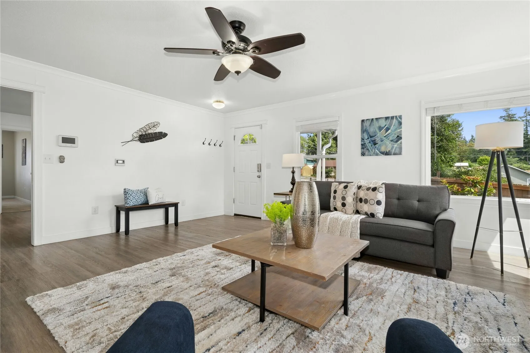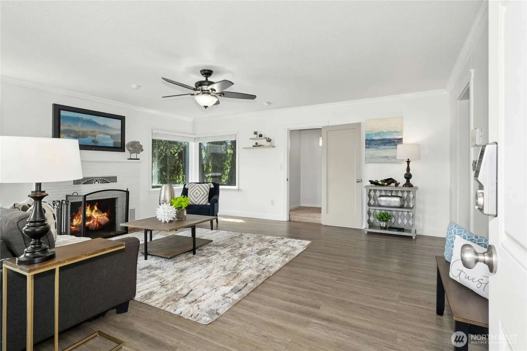 Tucked back from the road in a tree-lined setting, this 1943 bungalow will enchant you with its classic charm and seamless updates for modern living. Step into a light-filled living room with wrap-around windows flanking the beautiful period fireplace. Cooking is a delight in the remodeled quartz/stainless kitchen opening to the dining area. Three bedrooms are all together on the main floor, including your primary with en-suite bath & walk-in closet. A large bonus room upstairs + xtra unfinished space in the basement offers potential work/play/storage. Create your own backyard oasis in the level, fenced yard with low-maintenance landscaping. New roof in 2024. Great location near I-5 access, light rail, schools, shops & dining! Just Reduced!