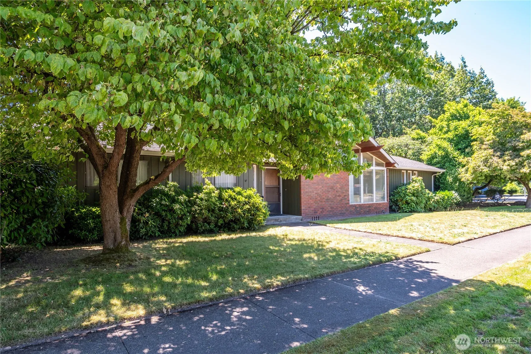 One level living. 3 bedroom, 1.75 bath home across the street from Lake Sacajawea. Family room and dining area, Spacious living room with wood burning fireplace. Primary bedroom with double closets and private bath with walk in shower. Newer heat pump and water heater. Pull down lighted attic storage with plywood flooring. Mostly original just needs some updating to shine again. Double car garage with storage and private back yard with a new fence and with mature landscaping, irrigation and sprinkler system and a patio. Walking distance to schools, downtown, shops and Lake Sacajawea.