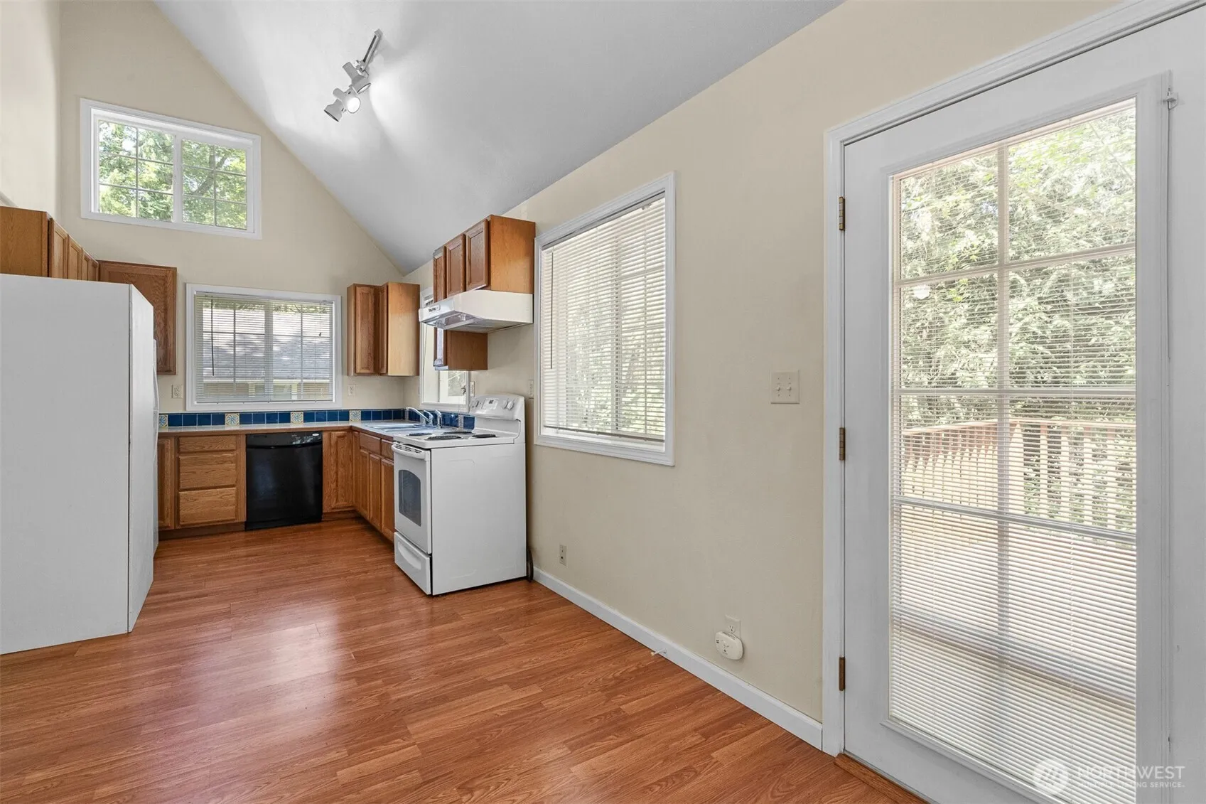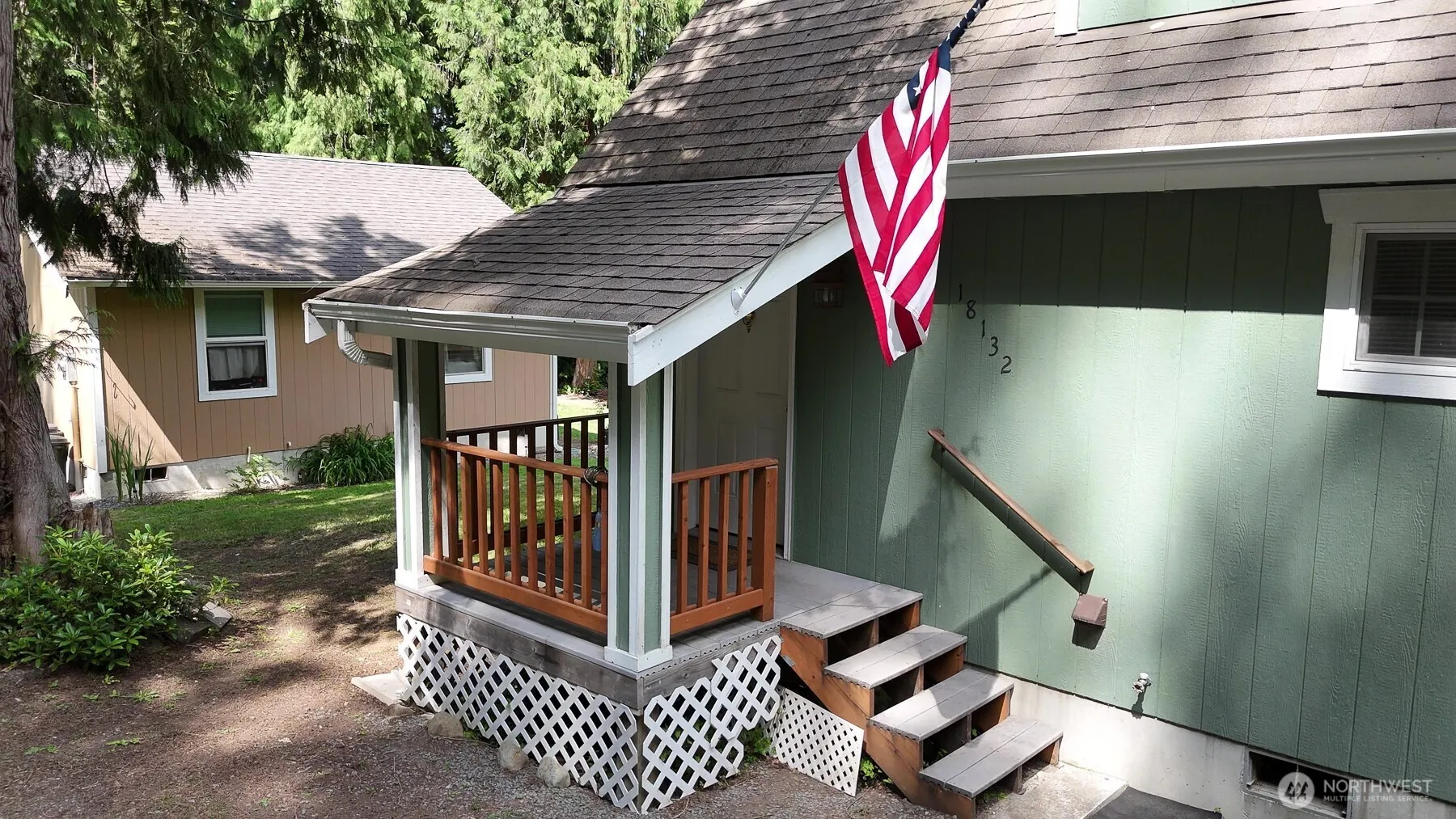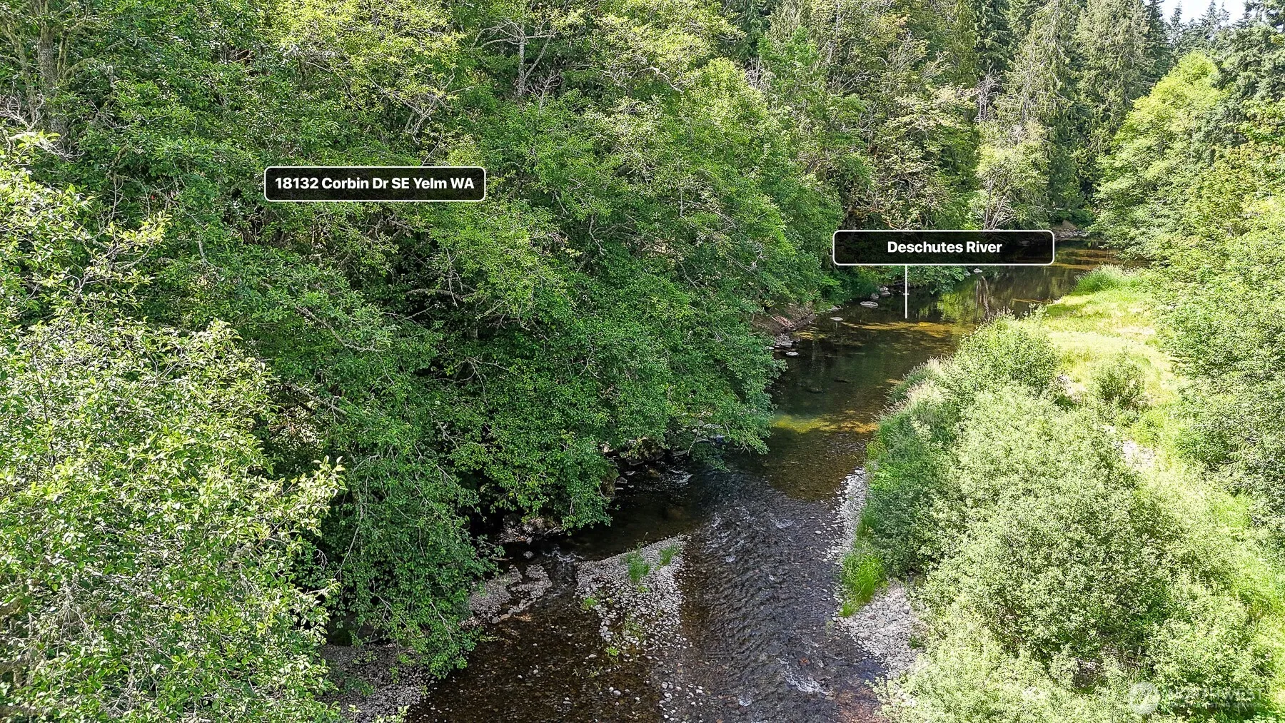 Waterfront living at affordable price! This adorable home is made for easy relaxation & comfort. With 166′ double lot on the river & high bank (no flooding here), this home is perfect as year-round residence, Airbnb or vacation home. Inside, you’ll find 2 story vaulted ceilings, multiple windows which bathe interior w/natural light, large open concept living areas on main floor: kitchen, dining/living room & office nook. Garden window above sink. Primary bedroom on main floor w/adjoining full bath. French doors lead to huge deck which allows for easy entertaining. Upper floor features another spacious bedroom w/it’s own bathroom & shower. Plenty of outside storage in 12×8 shed, RV trailer (no title) w/cover, fire pit. Small gated community.
