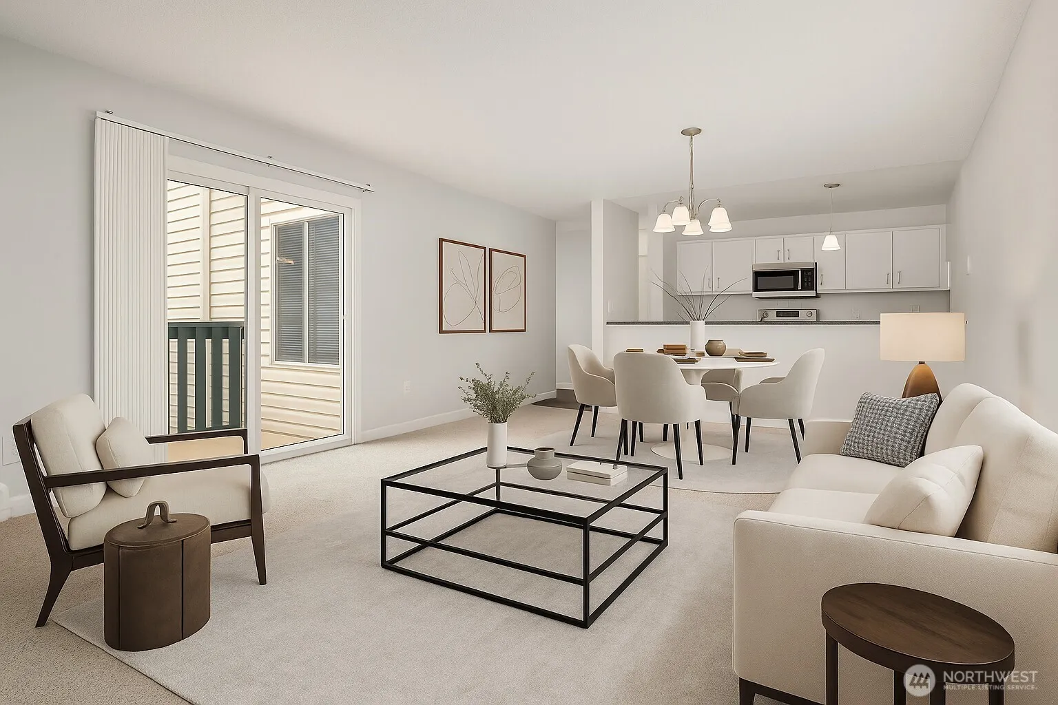 Discover your ideal home at the Highpointer, a highly sought-after condominium community in Burien. Spacious living and dining room with kitchen + eating bar, two spacious bedrooms and 1.75 baths & private deck. This unit features new flooring, carpet, appliances, cabinet hardware, updated molding & paint. Third-floor condo with territorial views from a private balcony, enjoy community amenities including seasonal swimming pool, clubhouse with game room, tennis court, and onsite laundry. Conveniently located with easy access to I-5, Hwy 509, bus lines, Sea-Tac Airport, shopping, dining, Carport parking, laundry in the unit-new washer/dryer