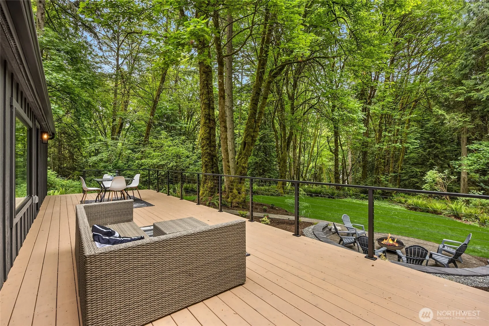 One-level, jewel-box home in a magical setting nestled on .83 private acres just a short stroll from South Beach and miles of nature trails. It even has a peek-a-boo view of Puget Sound. This is a move-in-ready, fully permitted 2025-effective rebuild with all new systems, roof, siding, appliances, flooring, windows, furnace, kitchen, baths – everything! Open great room layout is flooded with light & designed for indoor/outdoor living w/an expansive deck, completely private, landscaped yard, new lawn, & inviting fire pit – all in one of Bainbridge Island’s most peaceful & scenic neighborhoods. Plans included for single car carport by local architect Marc Aubin, BLU dot. Also offered on 1.28 ac for $1,290,000 (subject to completion of BLA).