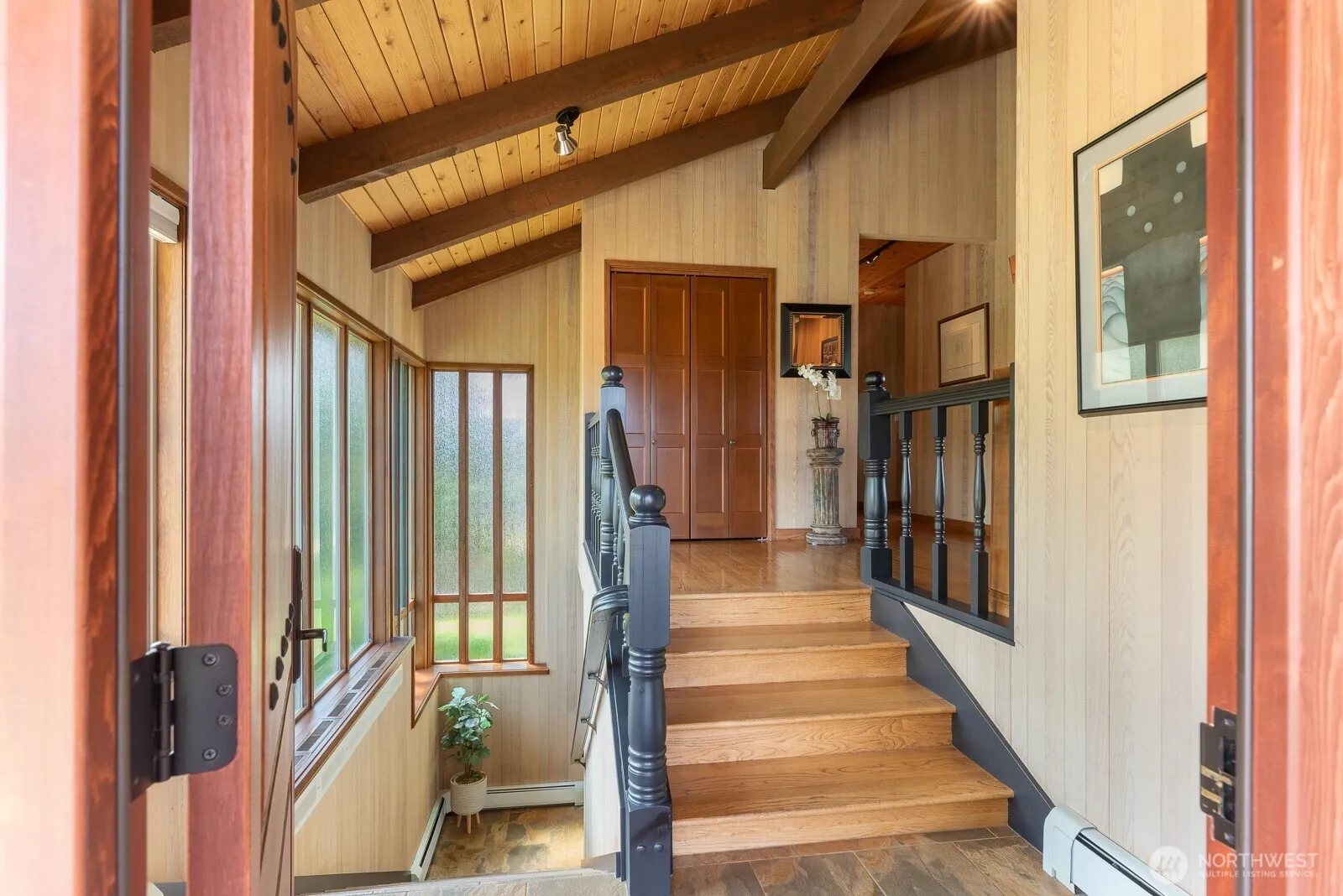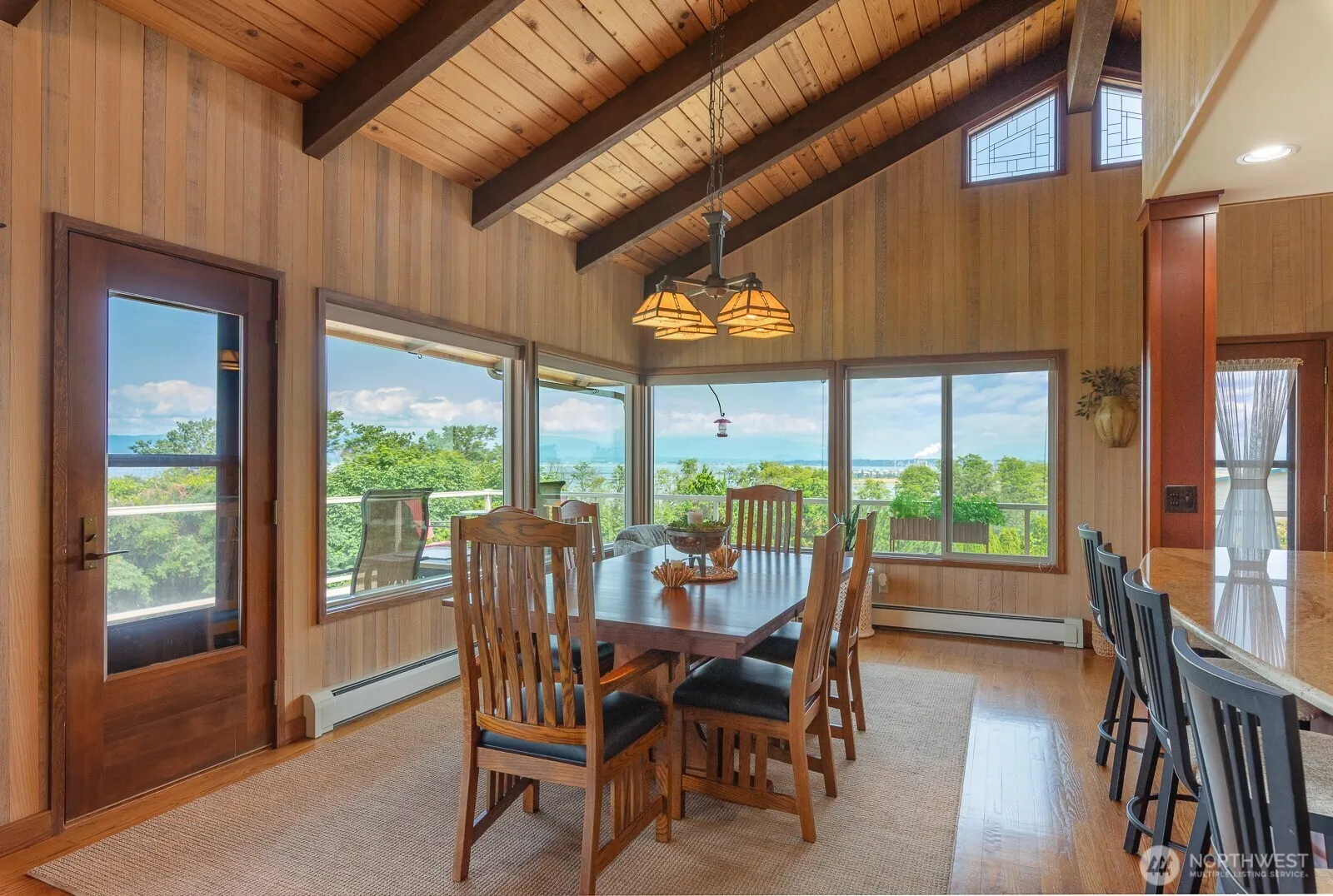 Feel the welcoming warmth as you enter through the front doors. This NW home greets you in every room of the home. Updated kitchen with storage galore, pull out pantry, double ovens, Viking cooktop+large entertaining counter for all to enjoy. Expansive deck brings the outside in & the vaulted ceilings in the living area bring the charm. Primary with large walk-in closet, dual vanity, tile shower & soaking tub are your retreat. Lower level includes 2nd bedroom, 3/4 bath with walk-in shower, family room & laundry room you won’t mind being in. Attached garage has shop space & bonus detached shop is 960sqft with mezzanine. Lush grounds & private patio. Home sits on almost half an acre in town with views of Fidalgo Bay, Mt. Baker, town & beyond.