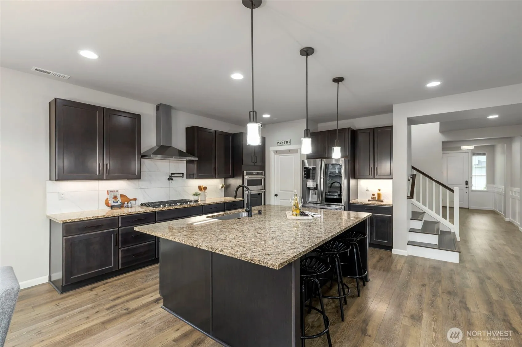 Large Home Full of Upgrades in Poulsbo’s Highly Coveted Mountain Aire! 4 bedrooms + 2.75 baths + 3120sqft+ office. A versatile floorplan w/ Jr Suite on the main floor & ensuite 3/4 bath. Stunning Chef’s kitchen with gas range (convenient pot filler), walk-in pantry, & built-in oven/microwave combo. No lack of storage or prep space. Newer LVP on the stairs & 2nd floor. Spacious primary suite has upgraded spa package 5-piece bath & 2 walk-in closets. 2nd floor includes laundry room with built-in storage & large rec room. Smart house upgrades include lights, security system, & surround sound. Enjoy the summer with AC indoors or on the covered patio year-round. Fully fenced. Easy commute to Bainbridge & Kingston Ferries, & Naval Bases.