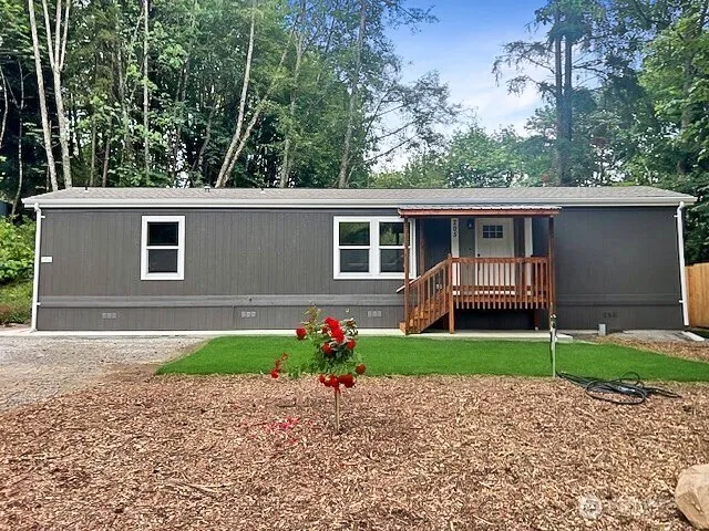 Check out this brand new 840 sq. ft. manufactured home with 2 bedrooms and 1¾ baths, situated on a spacious lot just outside of town. The home is set back from the road, offering plenty of privacy. The open-concept kitchen features sleek stainless steel appliances and an island, perfect for cooking and entertaining. The primary bedroom is located at one end of the home, while the second bedroom is at the opposite end for added privacy. The backyard is a serene retreat, complete with a covered patio and a tool shed. The long driveway offers plenty of parking space. Why buy used when you can have brand new!