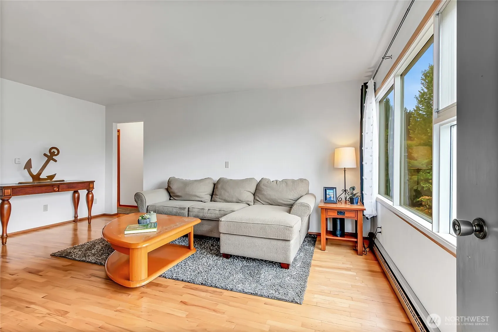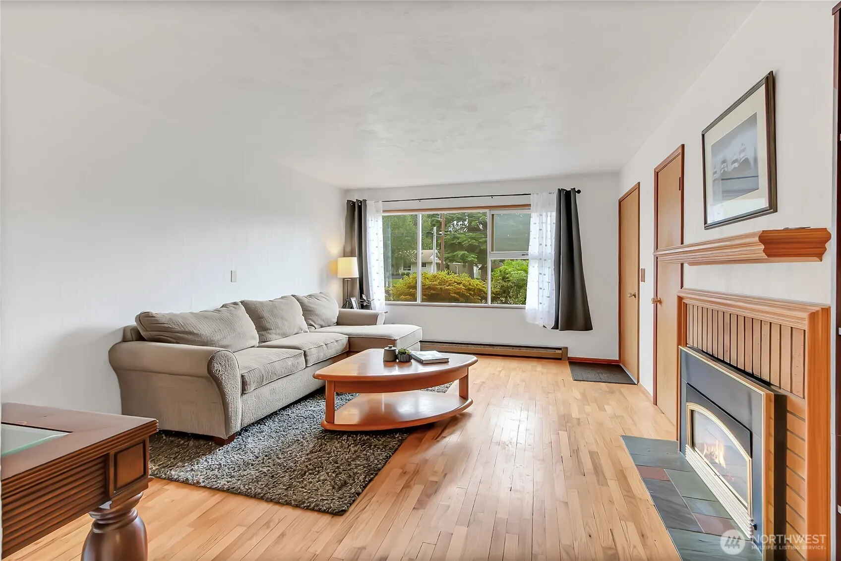Welcome to this charming 3-bed, 1.5-bath home with 1,672 sq ft on a corner lot in Montesano. Oak hardwood floors flow through living areas and bedrooms. The spacious living room features a cozy gas fireplace and large picture windows that fill the space with natural light. The stylish kitchen boasts stainless steel appliances and a window overlooking the backyard. The bright dining area opens to a covered patio—perfect for morning coffee or entertaining. Additional highlights include a large rec room, generous laundry area, and skylights. Outside, a fully fenced yard has double gate RV access, plus a 2-car garage and large driveway. Move-in ready!