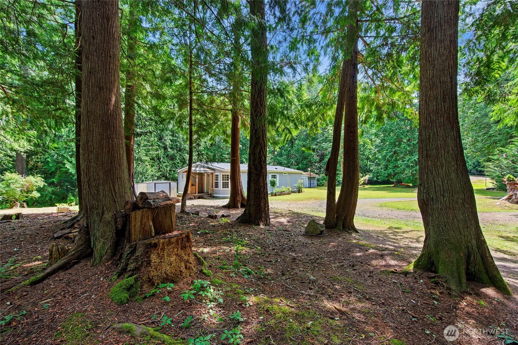 Tucked away, at the end of a quiet lane on 2.5 peaceful acres sits this affordable Poulsbo gem that’s less than 5 minutes to downtown and all amenities. The circular driveway and many storage sheds offer room for all of your vehicles and hobbies. This 3 bed/2 bath manufactured home has everything you need for comfortable country living. The open living layout and separated bedrooms maximize the living space. Enjoy the cozy wood fireplace and large windows with private lawn & wildlife views. Outside, the property features open lawns, garden space and a beautiful cedar forest for exploring. 4 storage sheds offer ample storage. If you’re looking for a great entry level home in Poulsbo with a private and peaceful feel, this one’s for you.