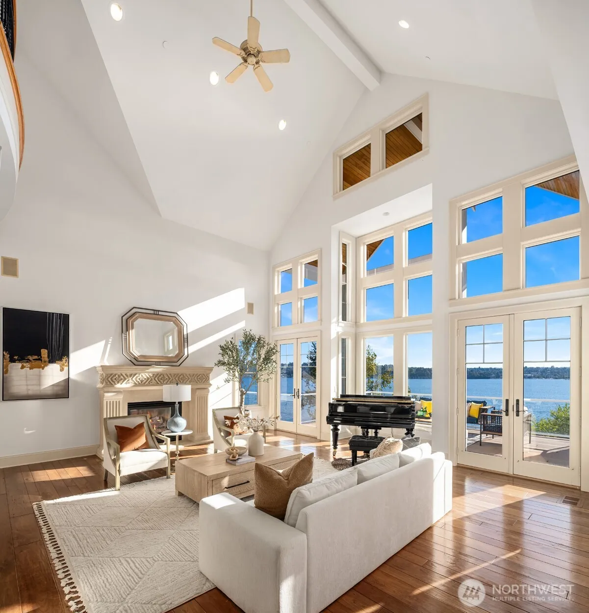 Welcome to this luxurious Mercer Island estate on over half an acre, offering breathtaking water and mountain views. This 5 bed, 5.25 bath home features soaring two-story ceilings, elegant living and dining spaces, and a classic gourmet kitchen with high-end finishes. The main floor includes a flex room, office, and guest suite. Upstairs you’ll find two guest bedrooms and a spacious primary bedroom; downstairs offers a wine cellar, a media room and an additional bedroom with full bath. The quality of this custom built is like no-other, and the neighborhood is so quiet and private. Enjoy outdoor living with a new lawn, play set, and oversized deck. Shared dock includes a boat slip and two jet ski spots — the best of Northwest living.