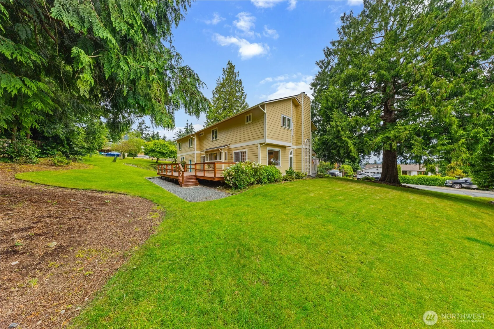 Nestled on a large lot at the end of a peaceful, dead-end street, this spacious 4-bedroom home offers comfort, style, and room to grow. With 2,768 SF of thoughtfully designed living space, you’ll find everything you need and more. The beautifully updated kitchen features quartz counters, stainless steel appliances, a walk-in pantry, and overlooks the expansive backyard. Hardwood floors flow throughout, complementing a formal living room with cozy wood-burning fireplace. The primary suite boasts its own fireplace, walk-in closet, and ample space to unwind in the soaking tub. Convenient upstairs utility room. The massive family room is perfect for gatherings. Enjoy outdoor entertaining on the generous deck, plumbed for gas & water. Must see!