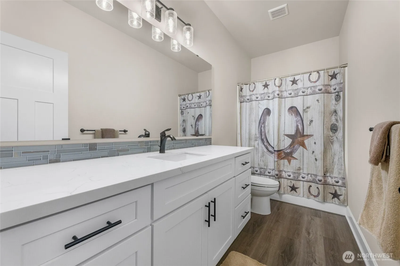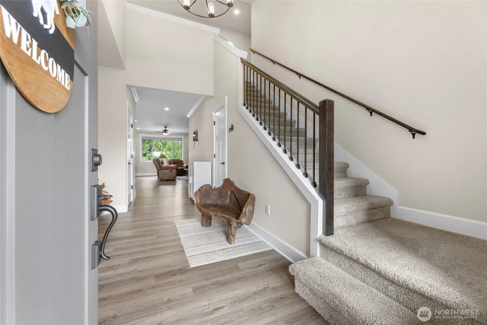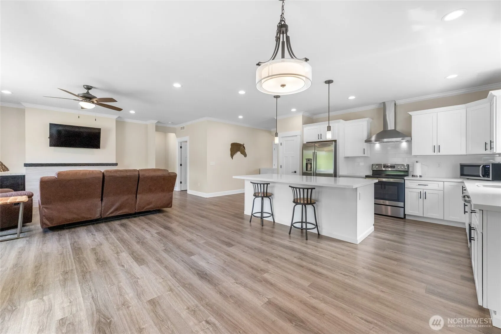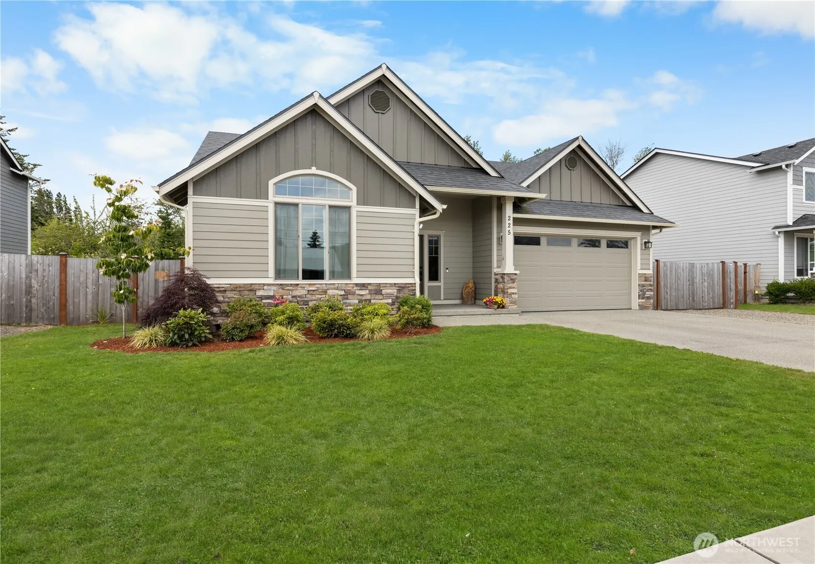 Welcome home to this stunning 2022 home in the heart of Buckley w/no HOA! With 2,304 sq ft of beautiful living space & 4-bd-2.75-baths this home sits in a peaceful setting that backs to a greenbelt all within walking distance to town. Main level features a spacious primary suite w/walk-in closet & a luxurious en-suite bath. Two additional bedrooms are also located on the main floor, open concept living/dining/kitchen area. Kitchen boasts sleek quartz countertops & modern finishes throughout. Upstairs bonus room, full bath, & guest bedroom. RV parking, EV car hookup, generator hookup, ductless mini-split heating & cooling, oversized patio for outdoor living, fully fenced yard, & outbuilding for extra storage. Amazing home!