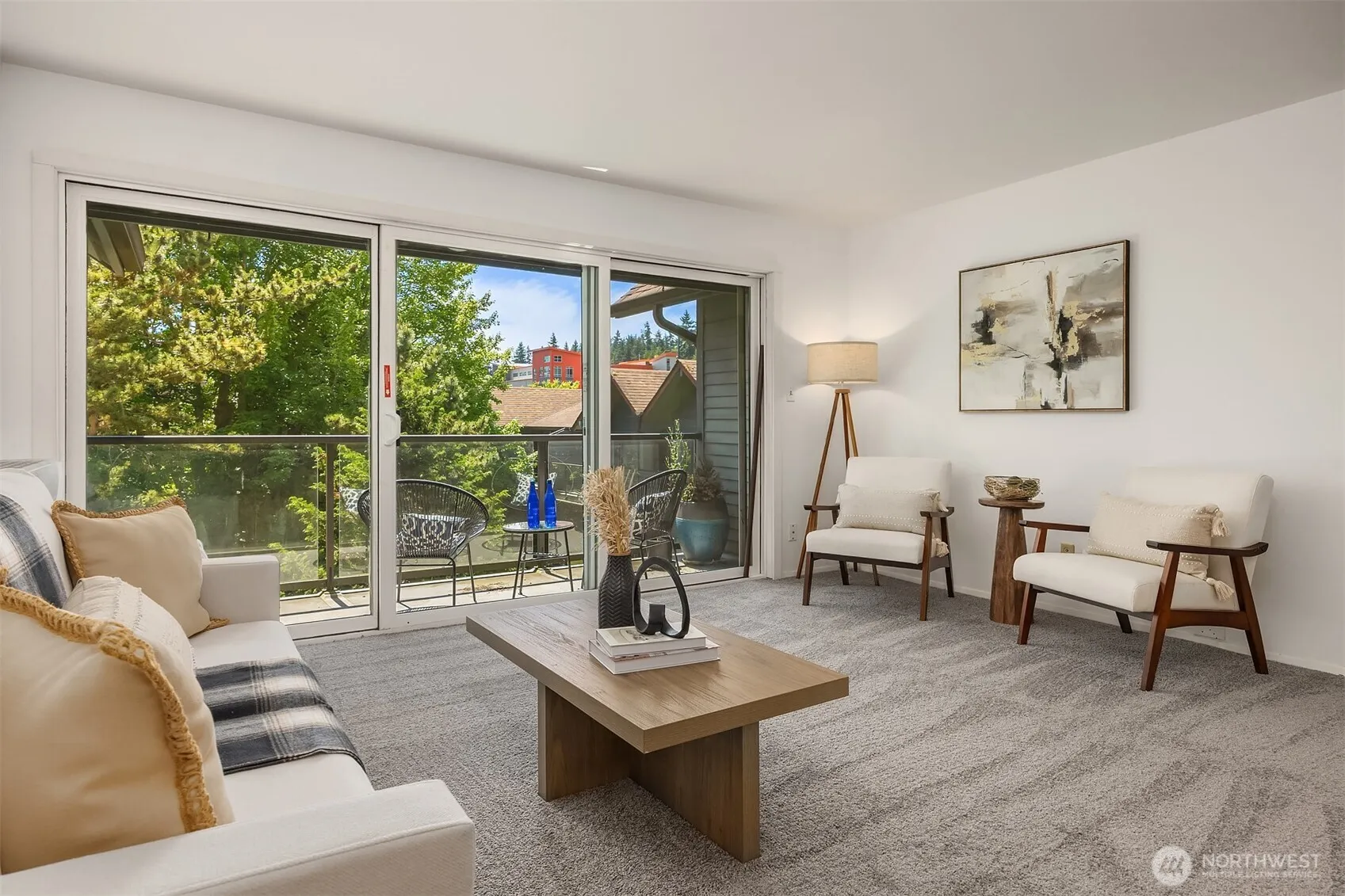 Coveted top-floor living at Echo Cove—complete with own in-unit all-in-one washer & dryer! Skip the shared laundry room just easy, private convenience right at home. This top-floor unit offers maximum privacy & great territorial views. Light-filled interiors stay cool w/ AC unit, while brand NEW carpet, fresh paint, & updated vinyl flooring make it fully turnkey. Spacious bedroom w/ double windows & closet w/ built-ins to keep everything tidy. Kitchen offers modern two-tone cabinetry, newer dishwasher, & instant hot water faucet for ease. Storage unit on the same floor for extra space. Enjoy a dedicated carport space, plus unbeatable access to lake life, HWY 99, Costco, bus lines and I-5. The perfect blend of comfort, convenience & location